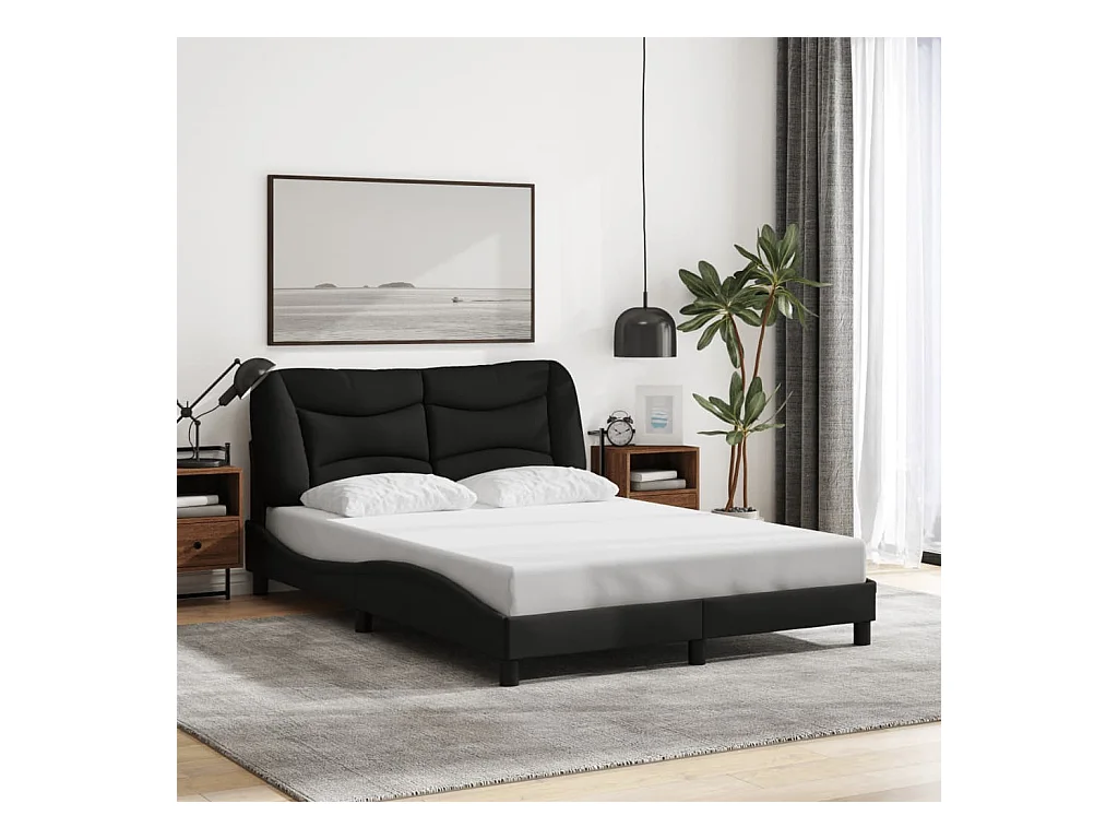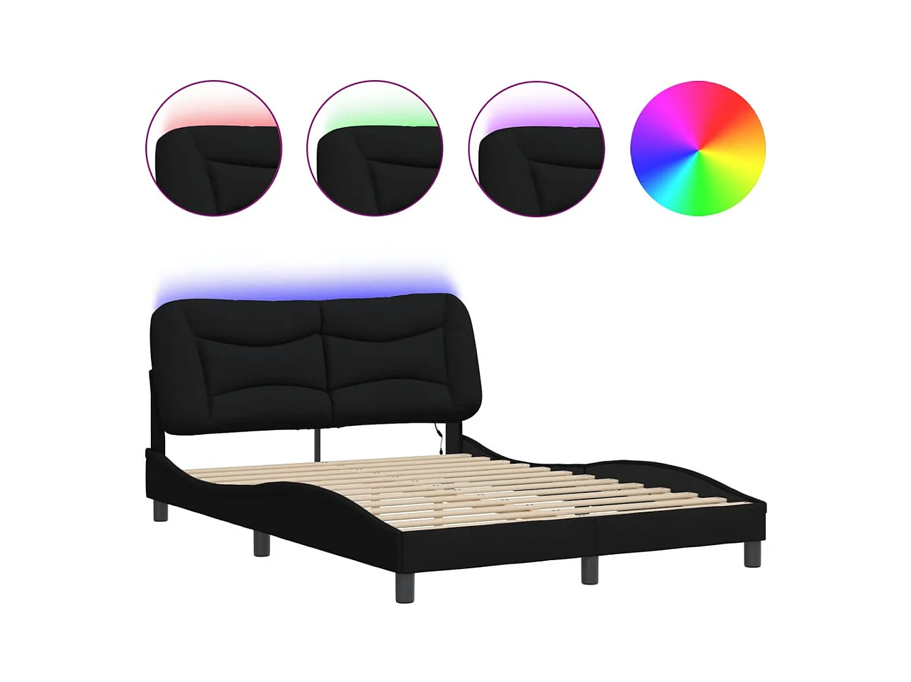 Cama matrimonial- 140x200 cm con luces LED tela negro ES412799