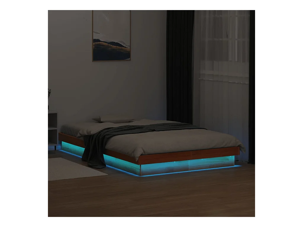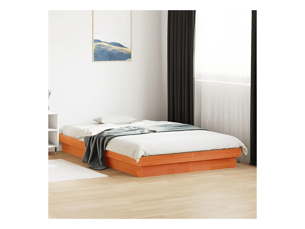 Cama matrimonial- 140x200cm LED madera maciza pino marrón cera ES799749