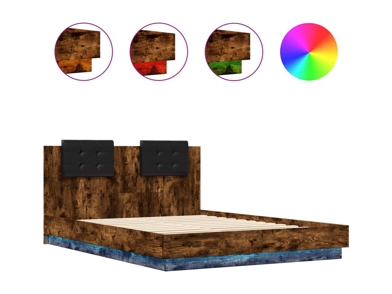Cama matrimonial- 150x200 cm cabecero luces LED roble ahumado ES877487