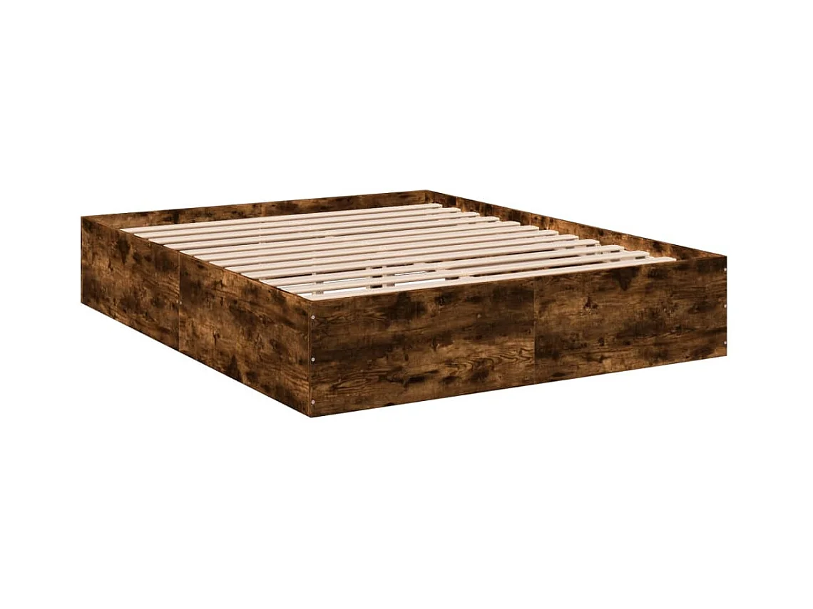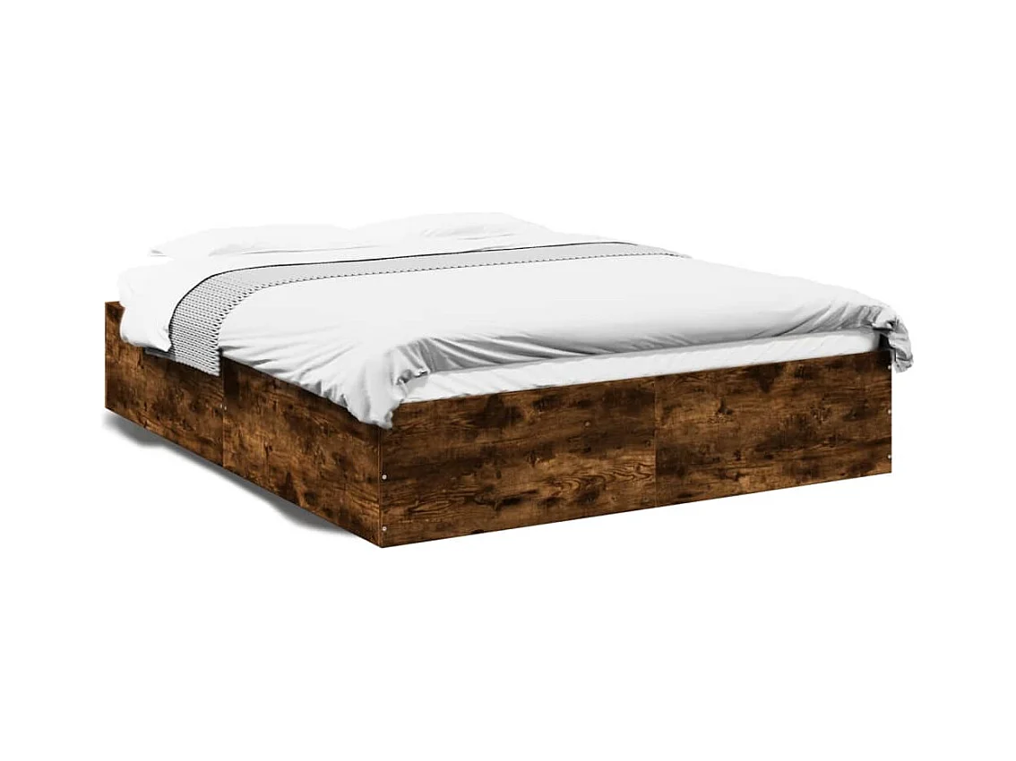 Cama matrimonial- 150x200cm madera de ingeniería roble ahumado ES138802