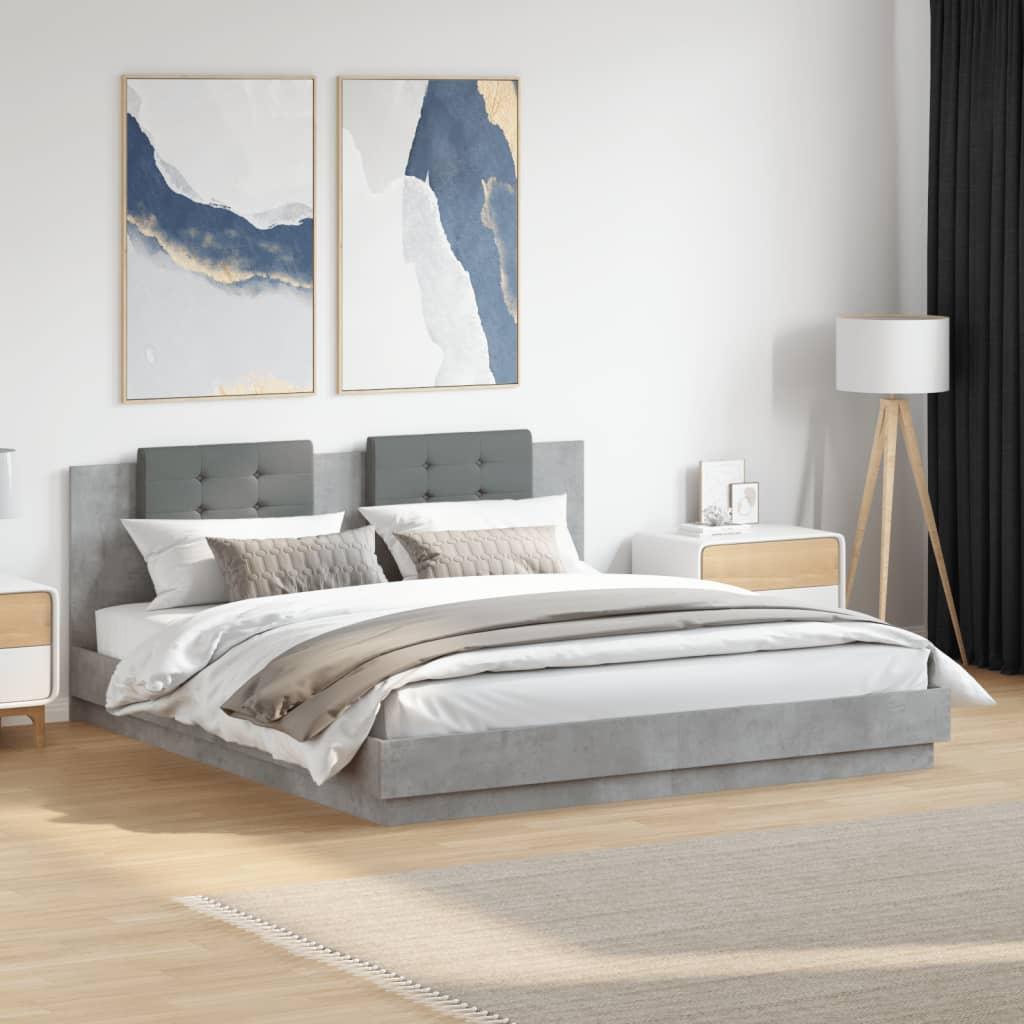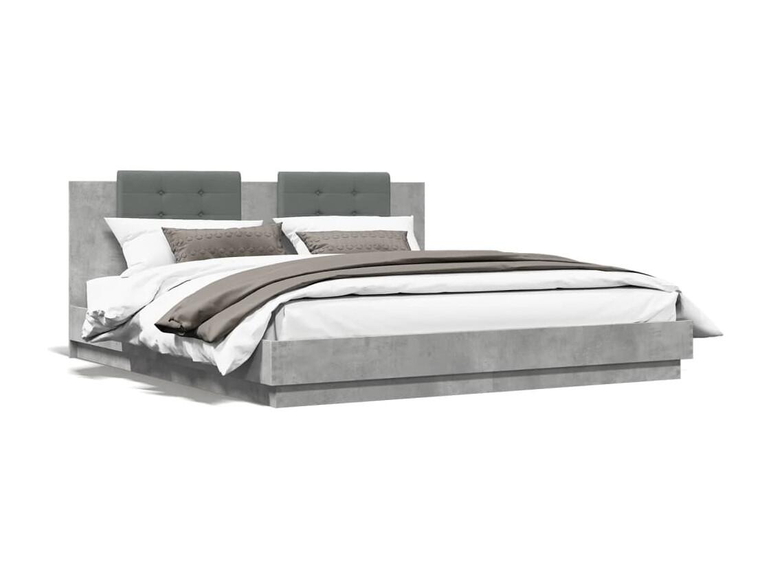 Cama matrimonial- 160x200 cm cabecero luces LED gris hormigón ES756762