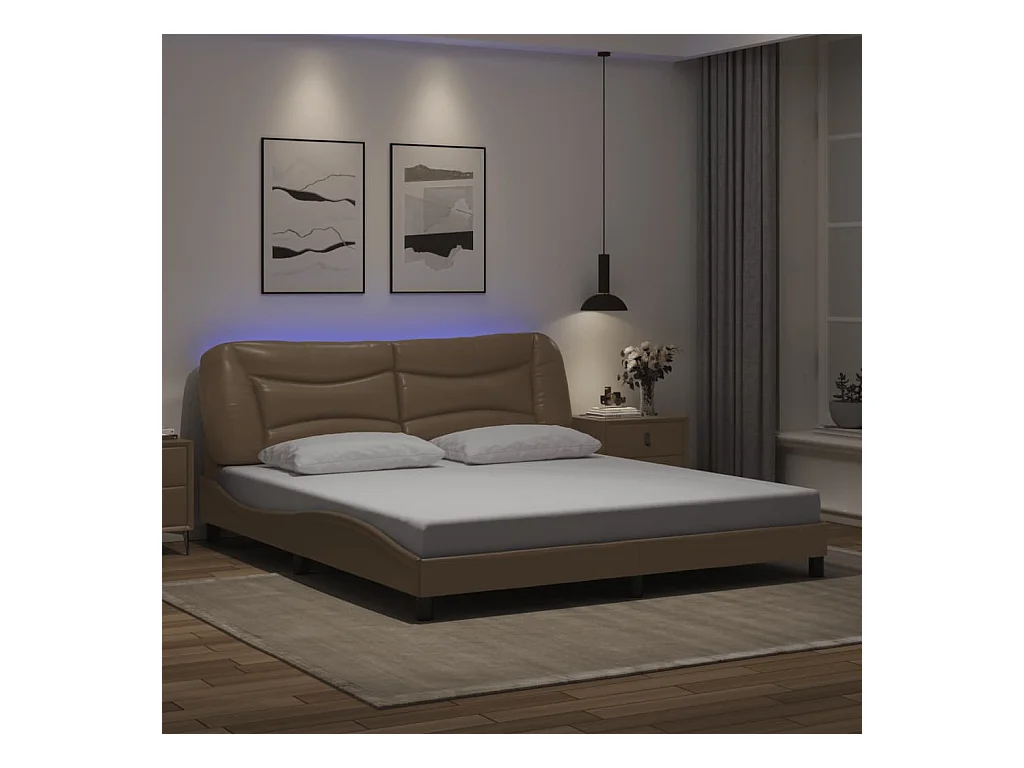 Cama matrimonial- 120x200 cm con LED cuero sintético capuchino ES655006