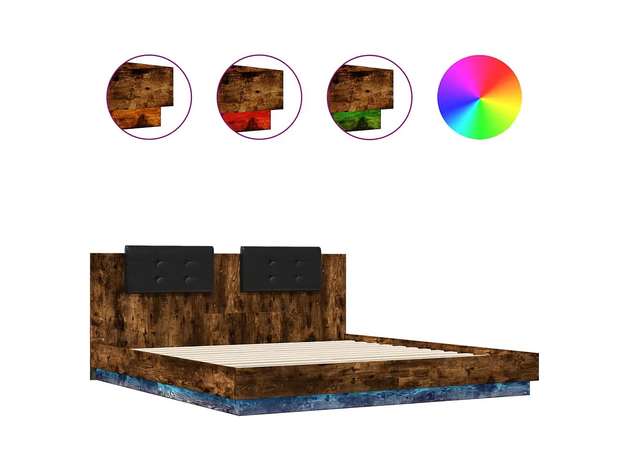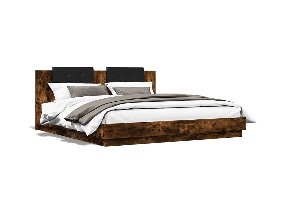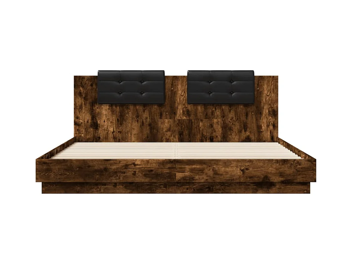 Cama matrimonial- 200x200 cm cabecero luces LED roble ahumado ES694491
