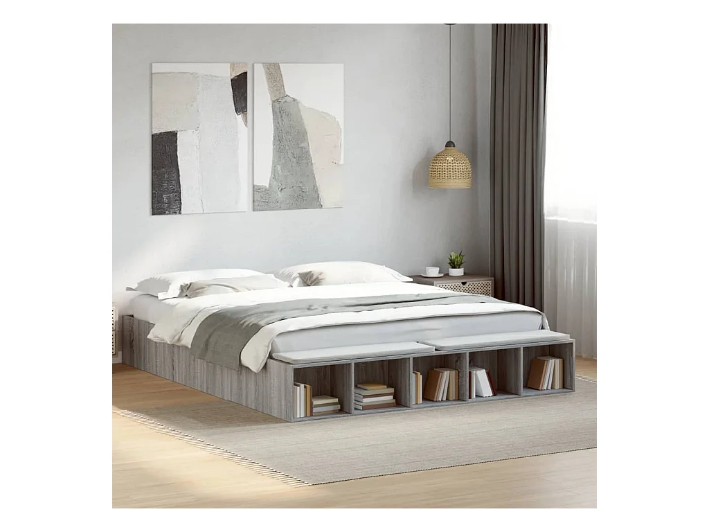 Cama matrimonial- 200x200 cm madera de ingeniería gris Sonoma ES958929