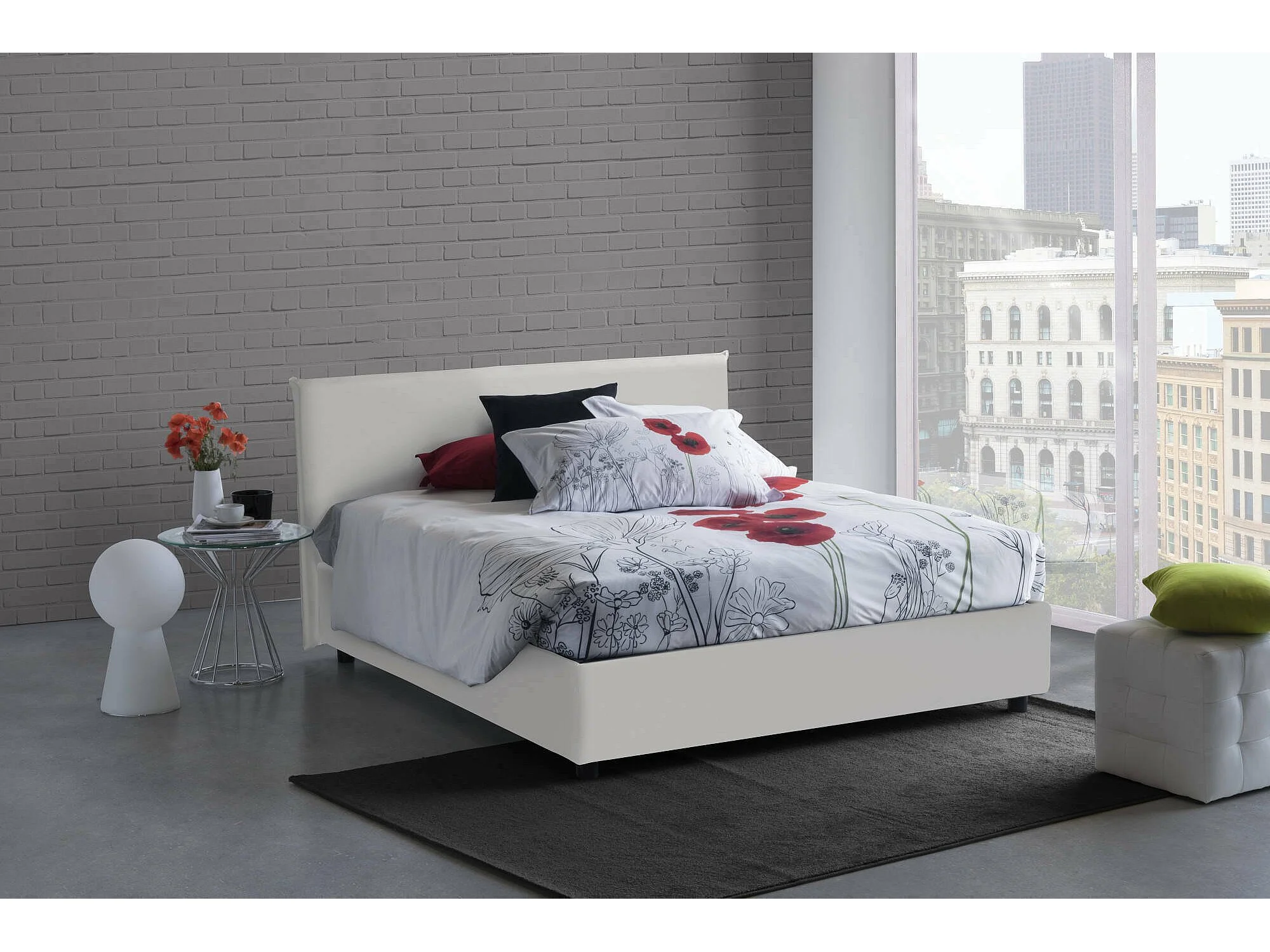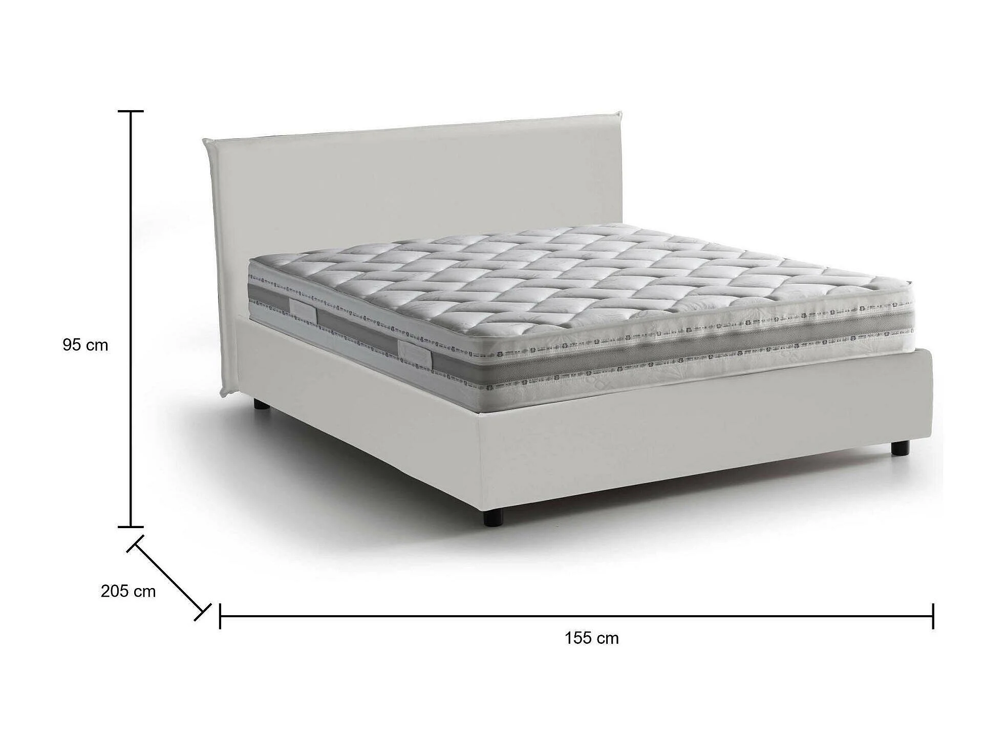 Cama matrimonial Dacut, Cama contenedor con tapizado en ecopiel, 100% Made in Italy, Apertura frontal, con colchón Cm 140x190 incluido, Blanco