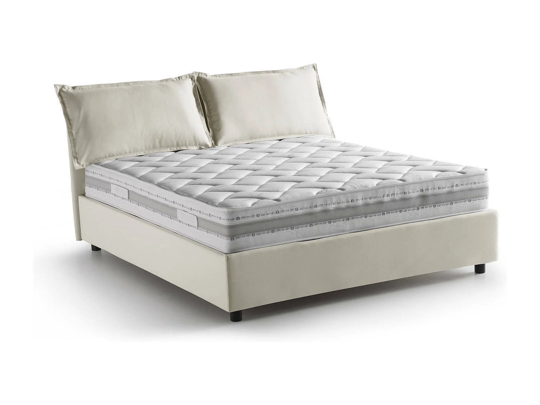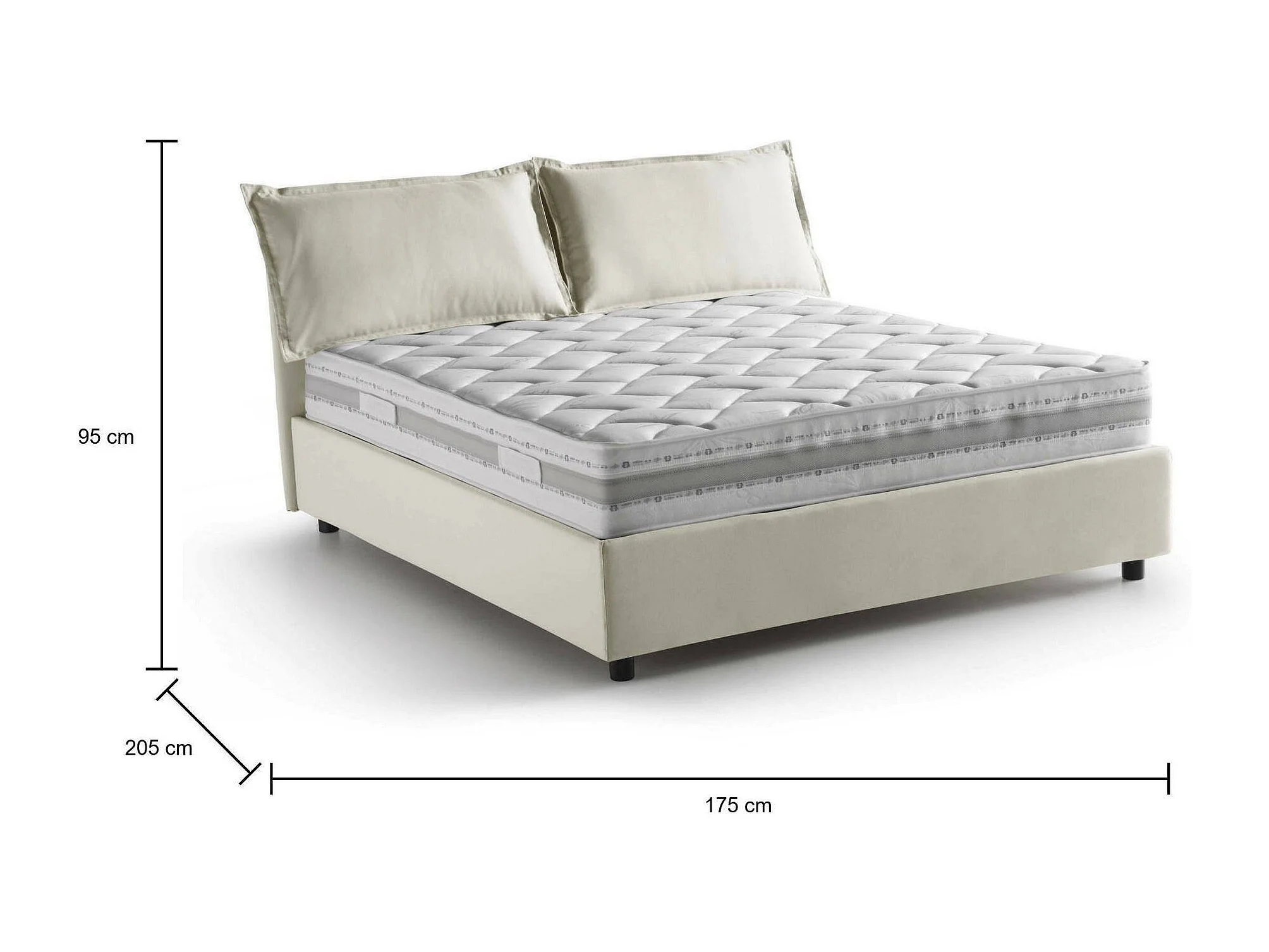 Cama matrimonial Dcarrar, Cama contenedor con revestimiento de tela, 100% Made in Italy, Apertura frontal, con colchón 160x190 cm incluido, Beige