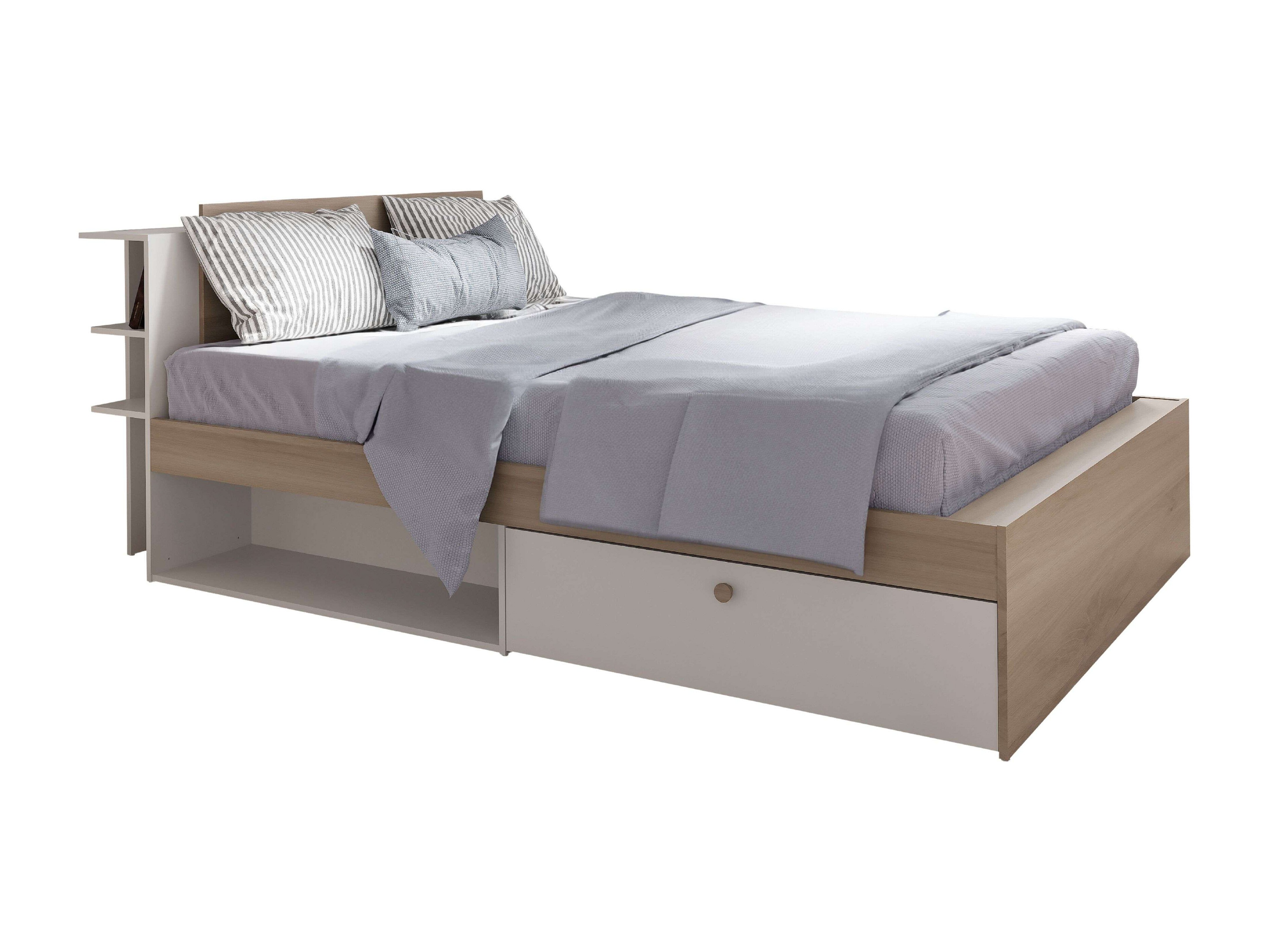 Cama matrimonio Life roble Kronberg/blanco mate con cabecero y 2 cajones