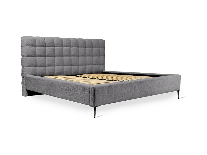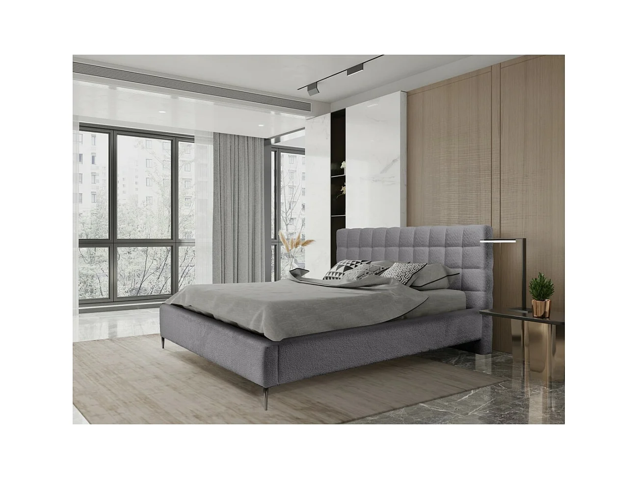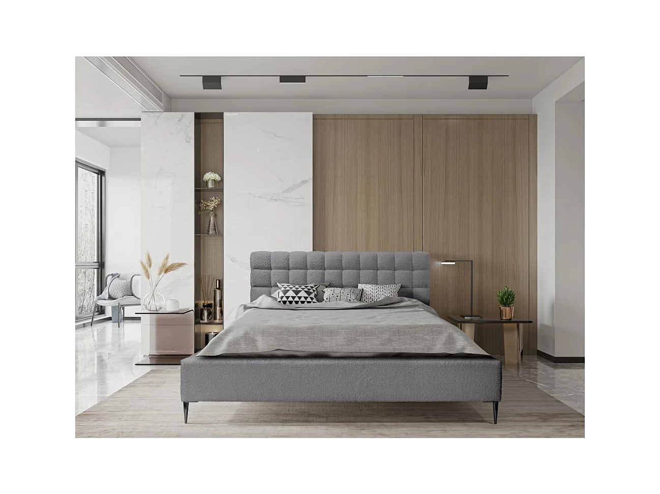 Cama doble ECHO de metal, 160x200 cm, gris brillante con somier incluido.