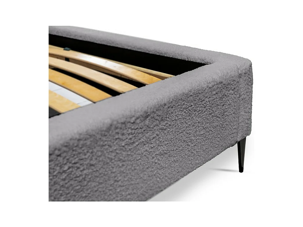 Cama MILLIO – Gris antracita – 160x200 cm – Tela de chenilla rizada – Somier incluido – Confort de hotel de 5 estrellas