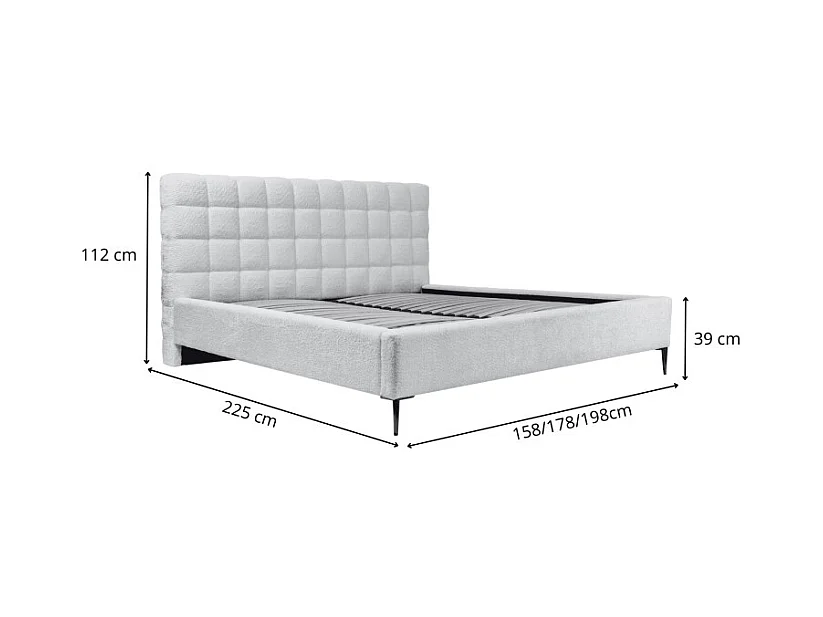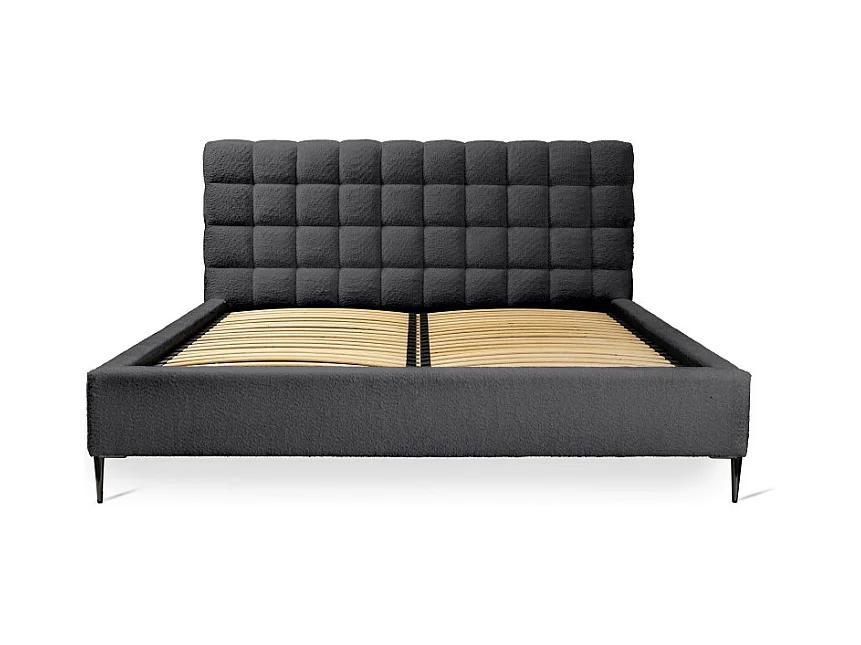 Cama MILLIO – Negra – 140x200 cm – Tela de chenilla rizada – Somier incluido – Confort de hotel 5 estrellas