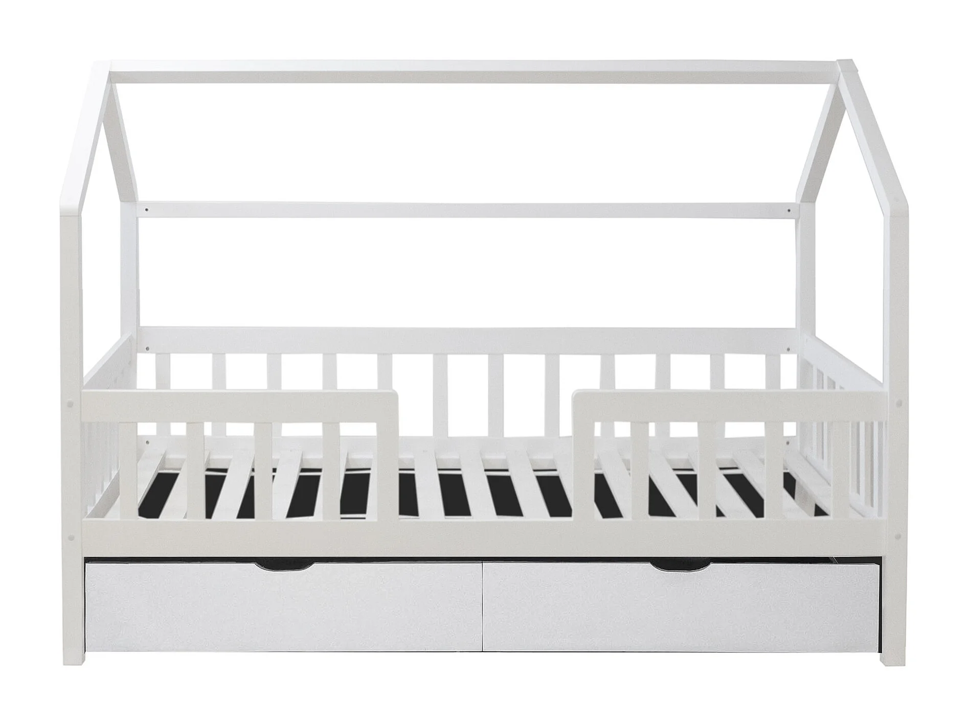 Cama casita con barandilla + 2 cajones madera blanco 90x190cm