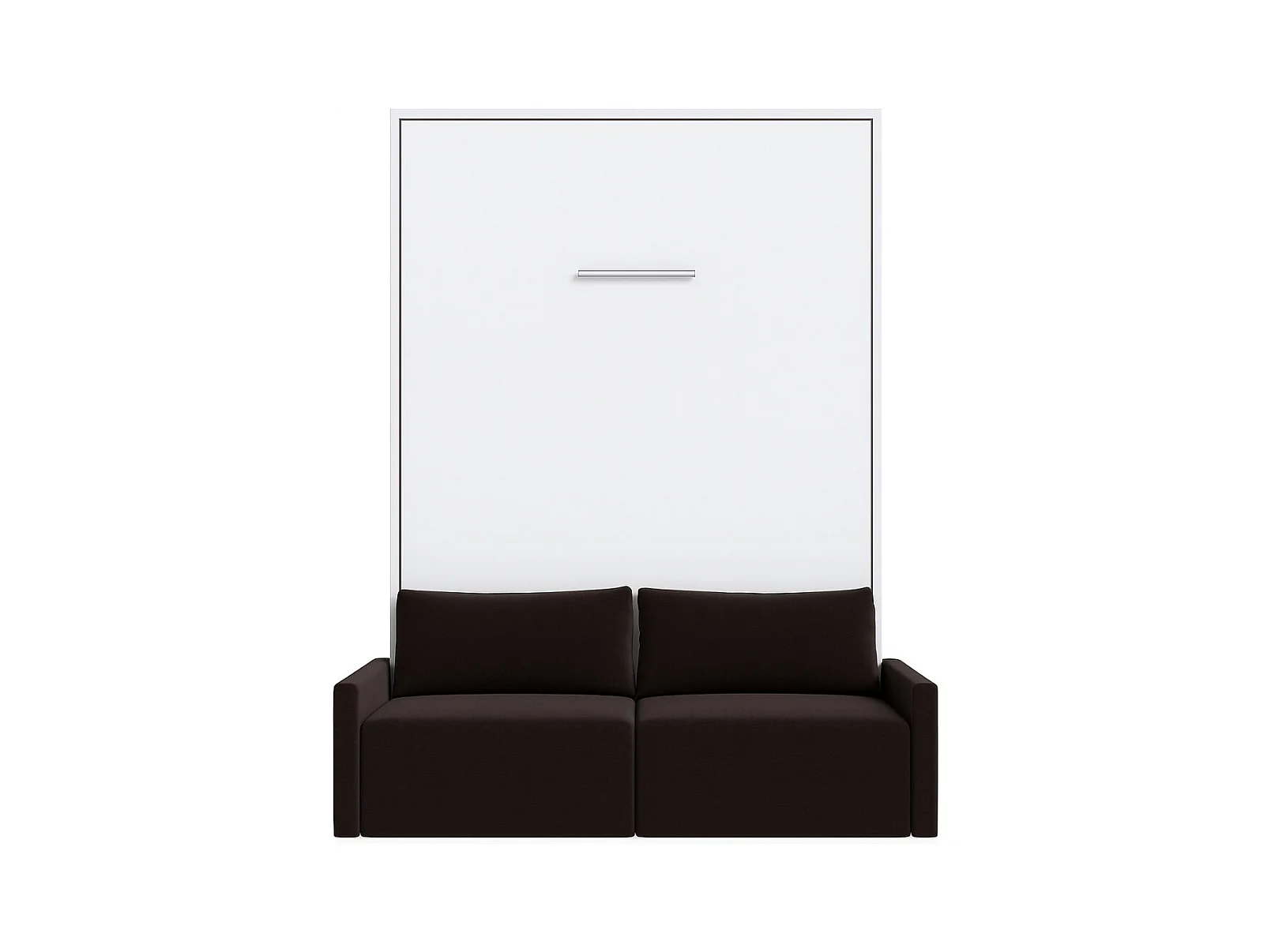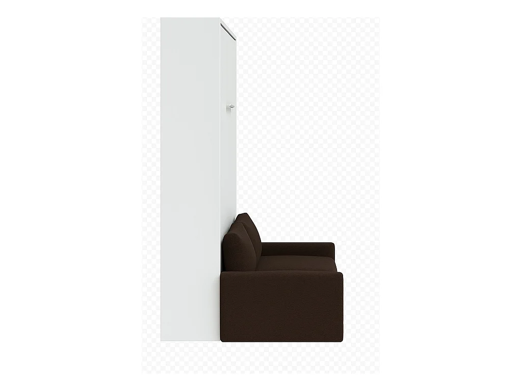 Cama Murphy vertical con sofá Valencia de alta gama-Con colchón-Ropa de cama 160x200 cm-Sofá Marrón oscuro-Estructura y fachada Blanche