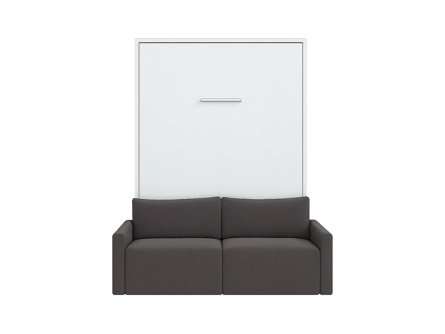 Cama Murphy vertical con sofá Valencia de alta gama-Ropa de cama 160x200 cm-Sofá Gris oscuro-Estructura y fachada Nogal