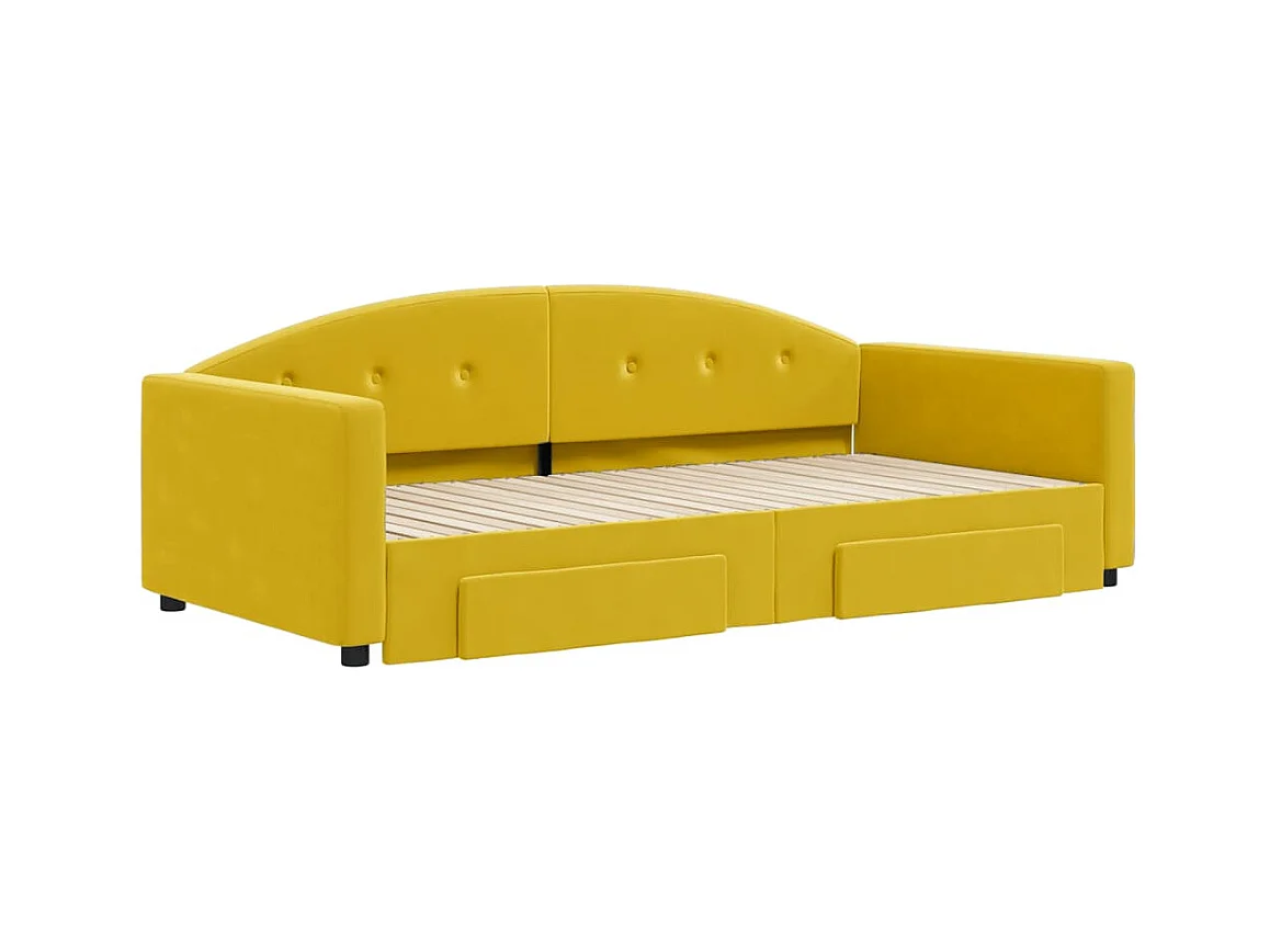Sofá cama nido con cajones terciopelo amarillo 100x200 cm