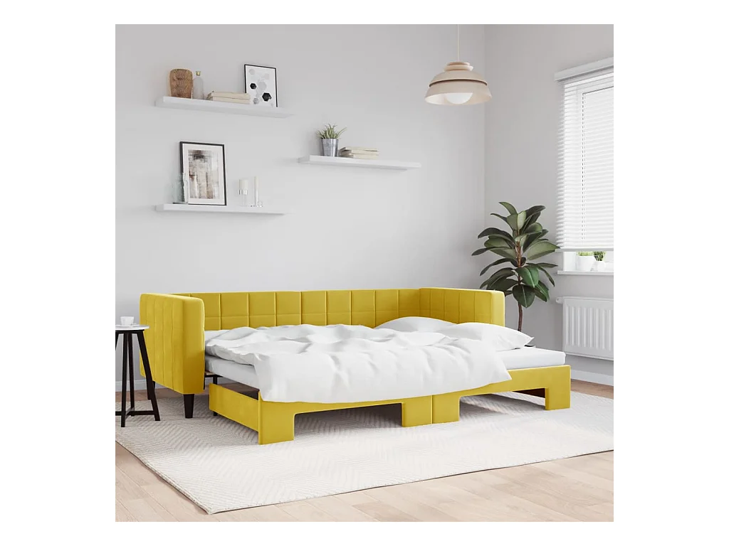 Sofá cama - 80x200 cm con colchón terciopelo amarillo ES66486