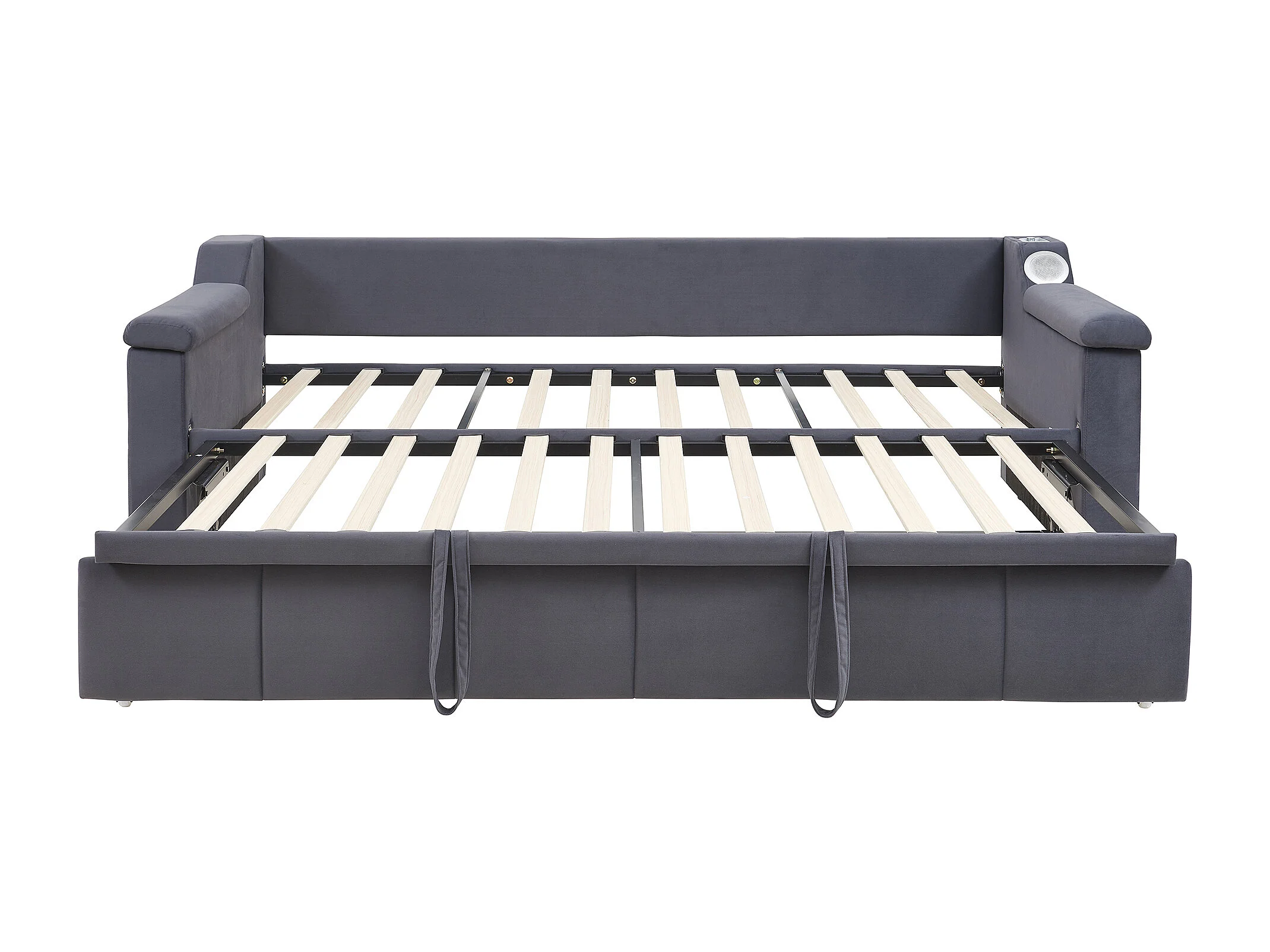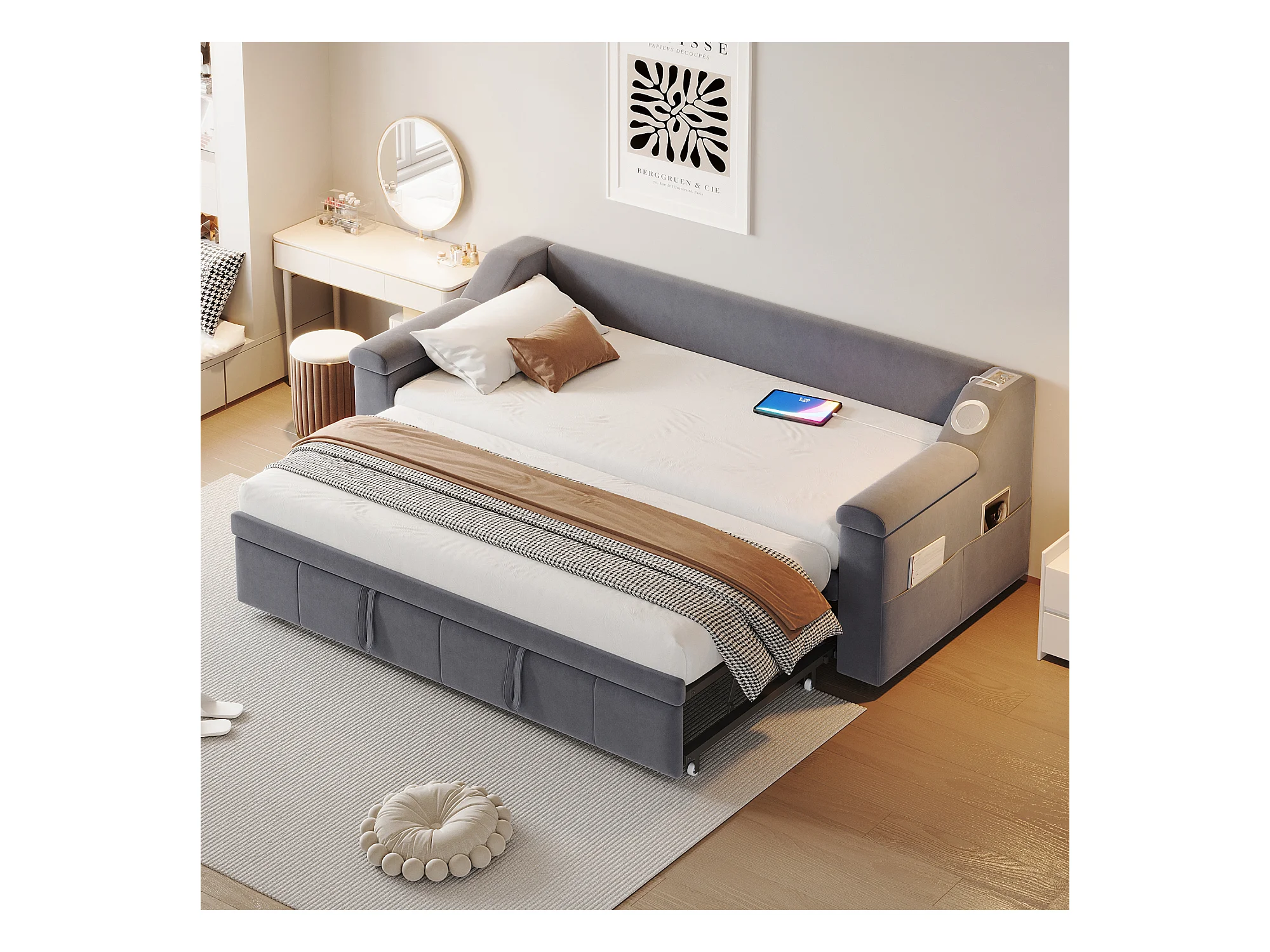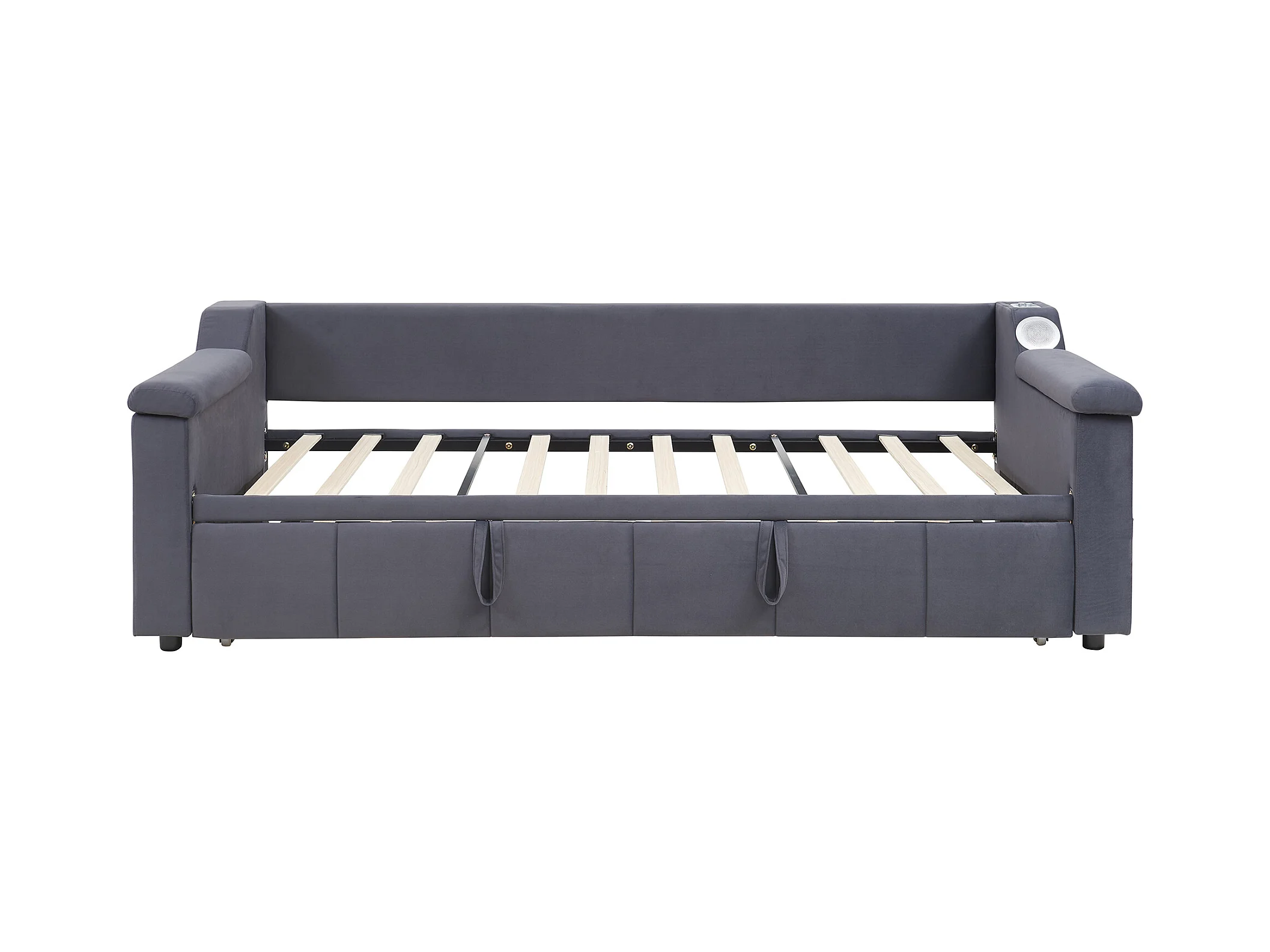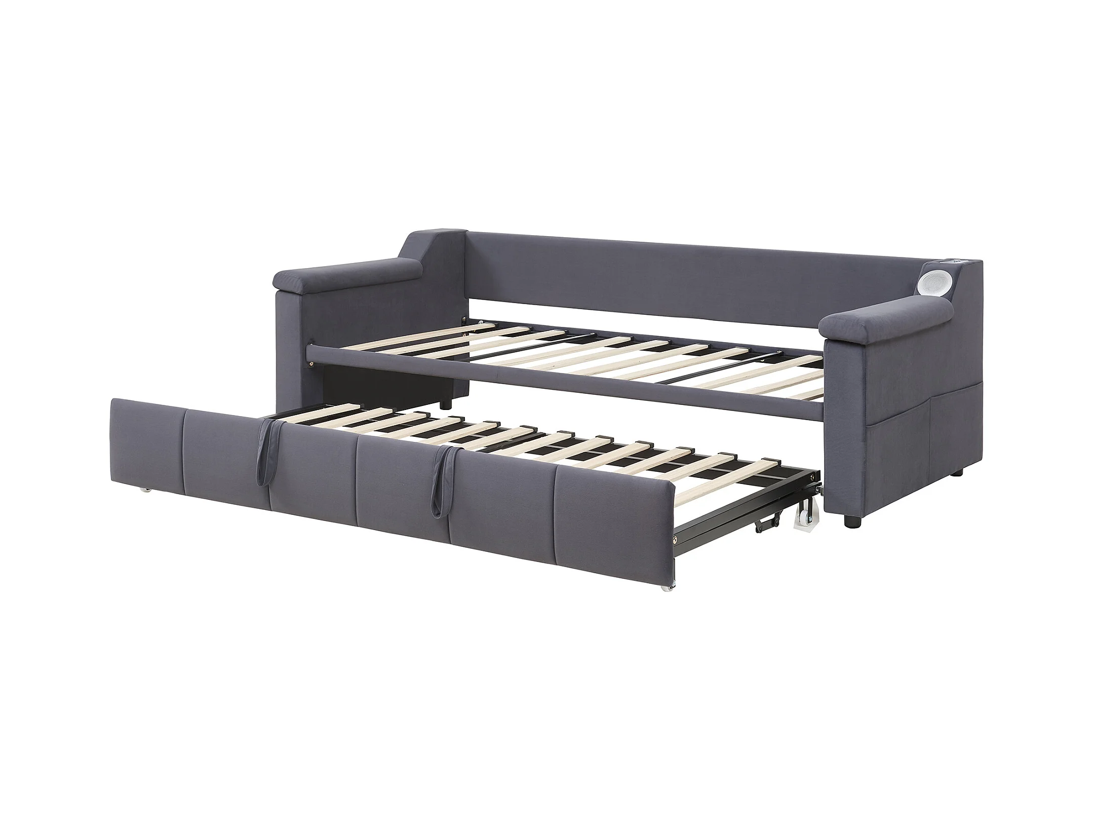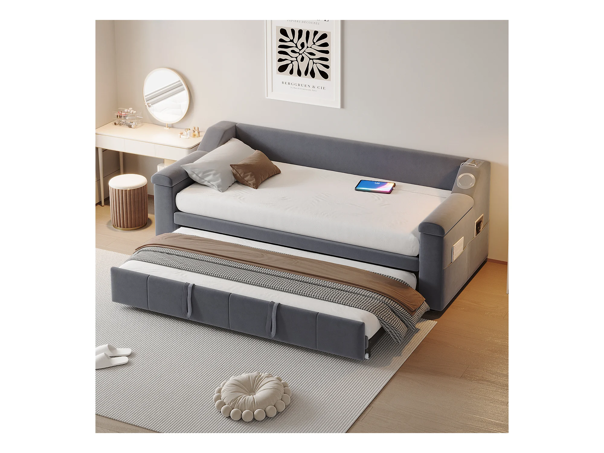 Cama nido 90/180x190 cm - Sofá cama con sistema de audio Bluetooth y carga USB - terciopelo gris