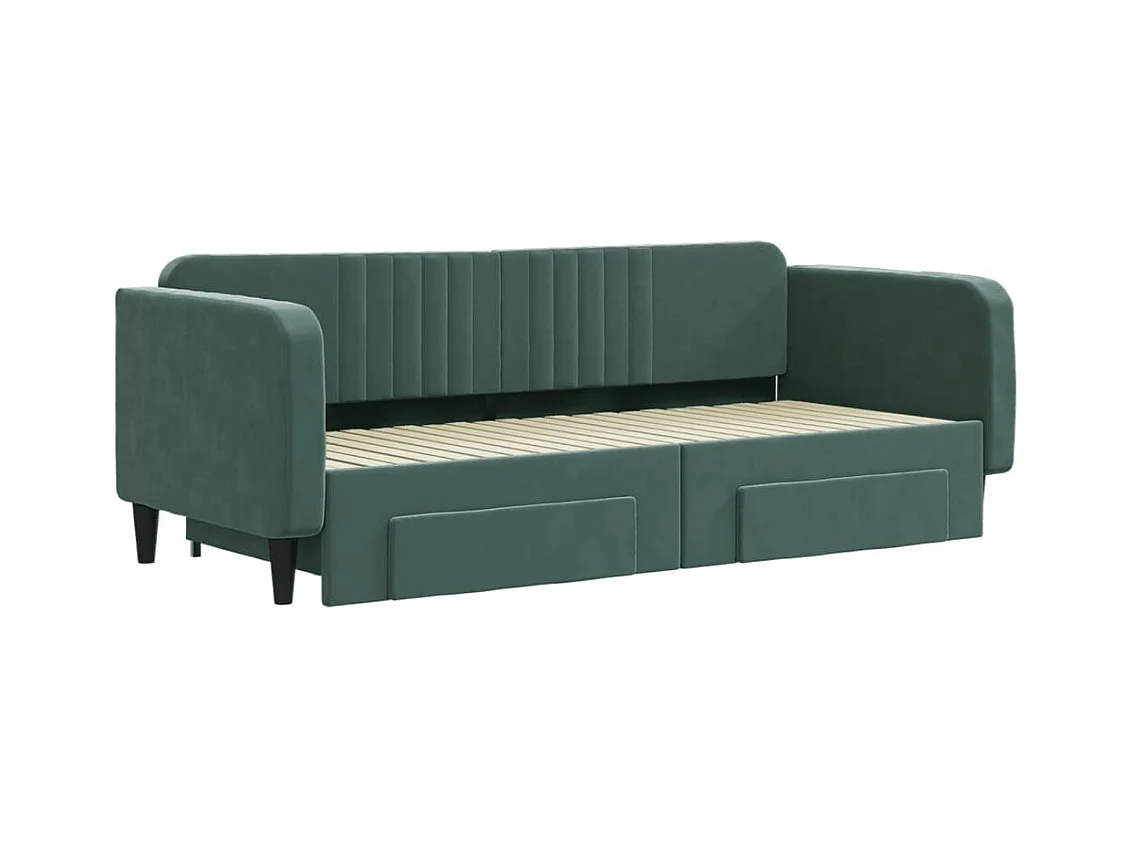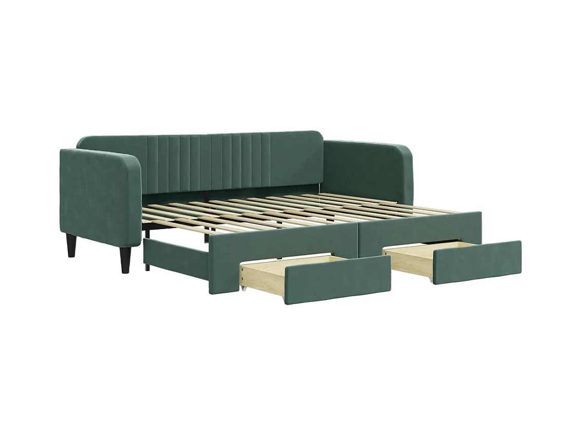 Cama nido con cajones terciopelo verde oscuro 90x200 cm ES553285