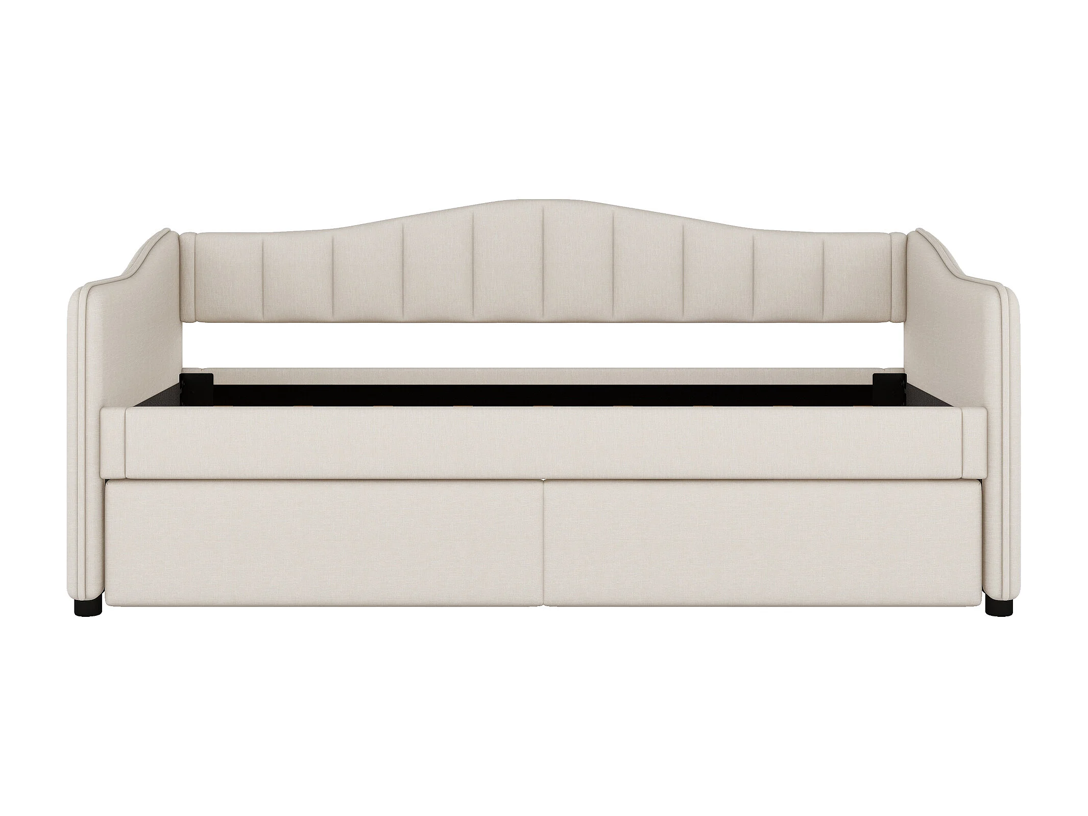 Cama nido 90x200 cm - Sofá cama con iluminación LED - somier de láminas de madera - lino beige