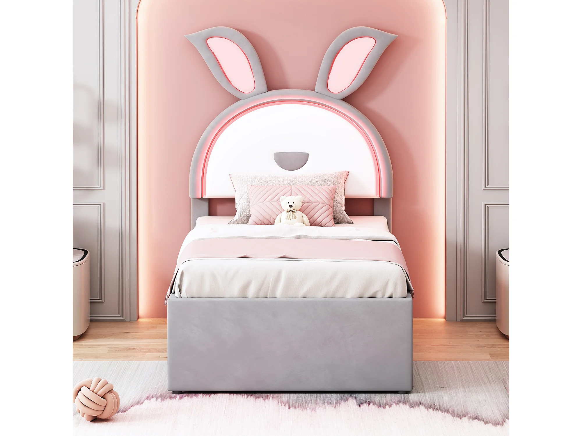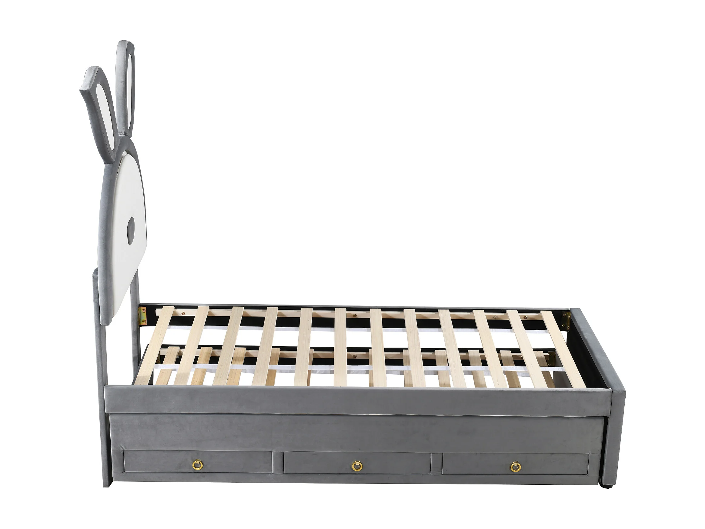 Cama nido de 90 x 200 cm - Cama infantil con cajones, iluminación LED y somier - Terciopelo gris - Colchón no incluido