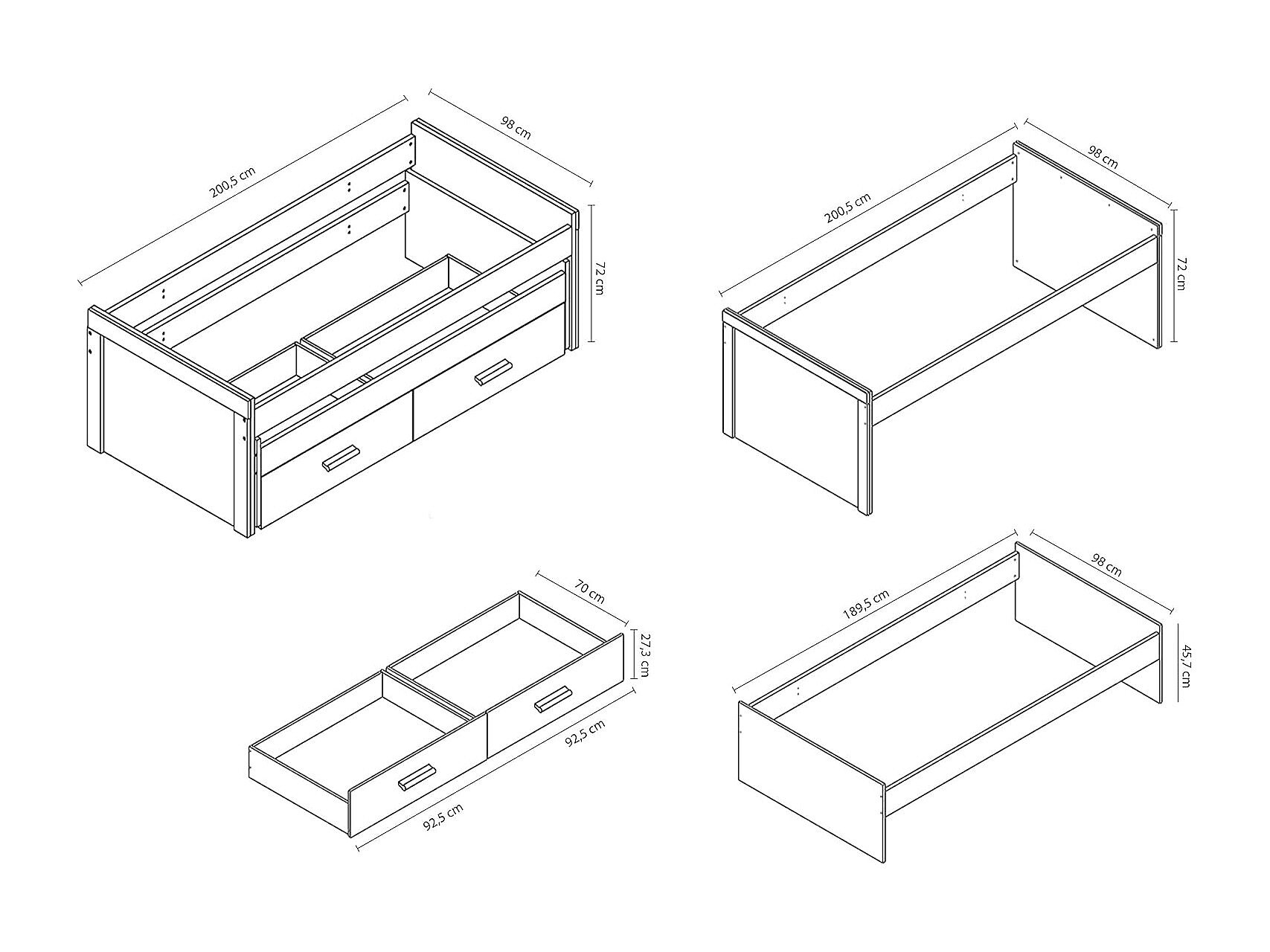 Cama Nido Juvenil con Dos Camas y Dos Cajones - Dormitorio en Cambria y Blanco - 200,5 x 98 x 72 cm