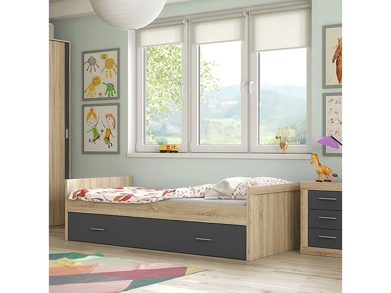 Cama nido Lara con frontal cambria/grafito 58x197x98 cm
