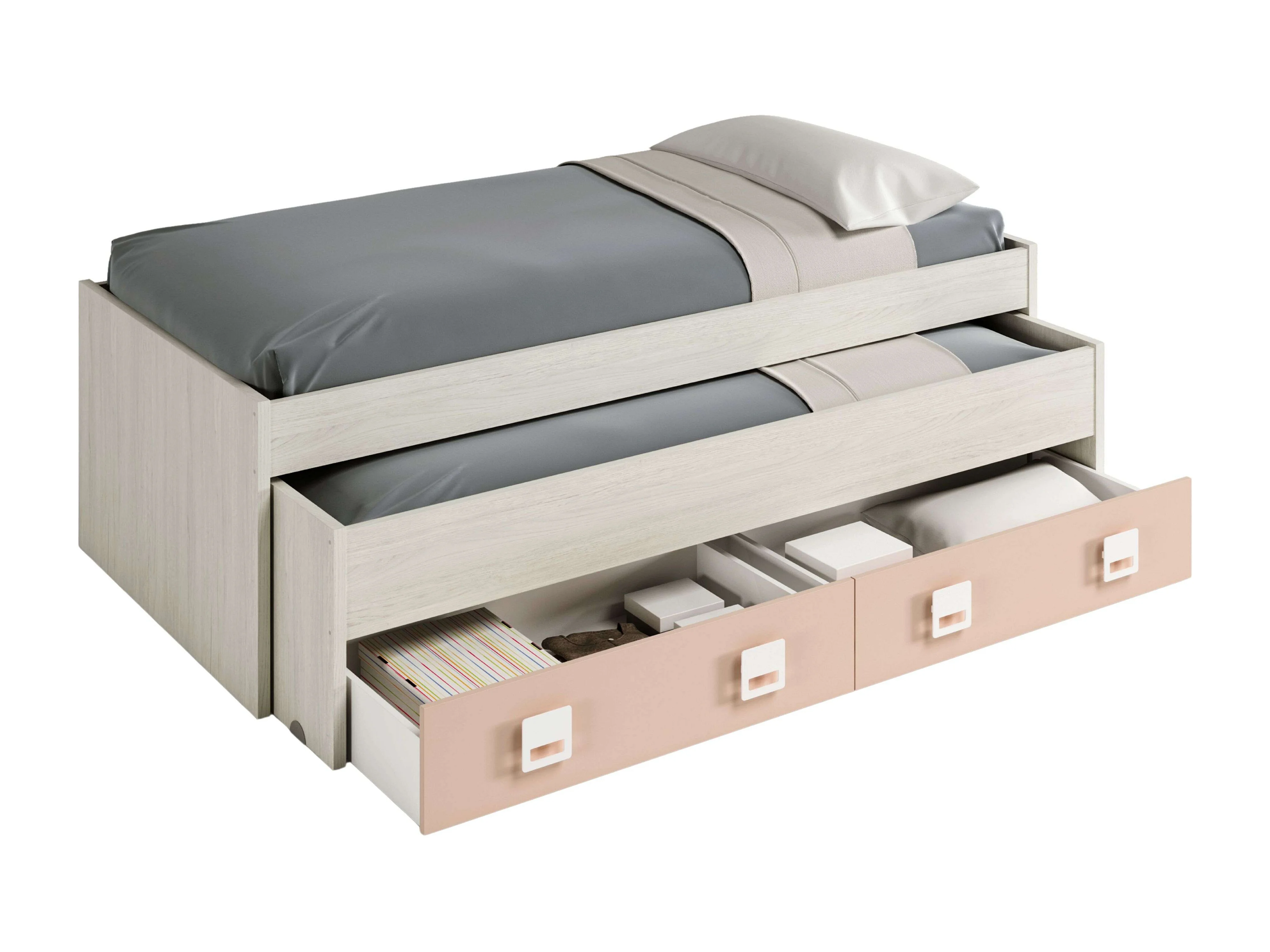 Cama Nido Nube con Estantería Habitación Infantil Blanco y Rosa 199x69x96 cm
