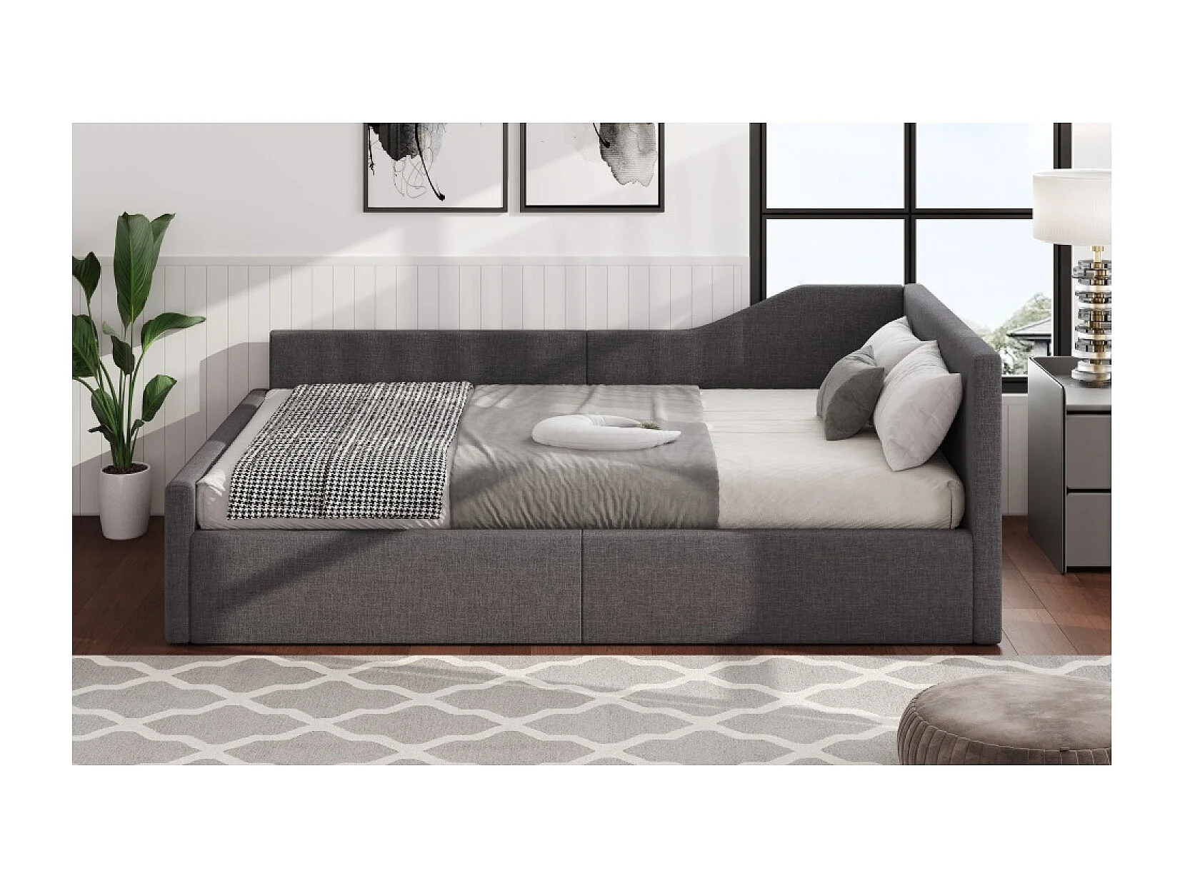 Cama nido para adultos de 140x200 cm en lino gris - Daybed con somier de láminas