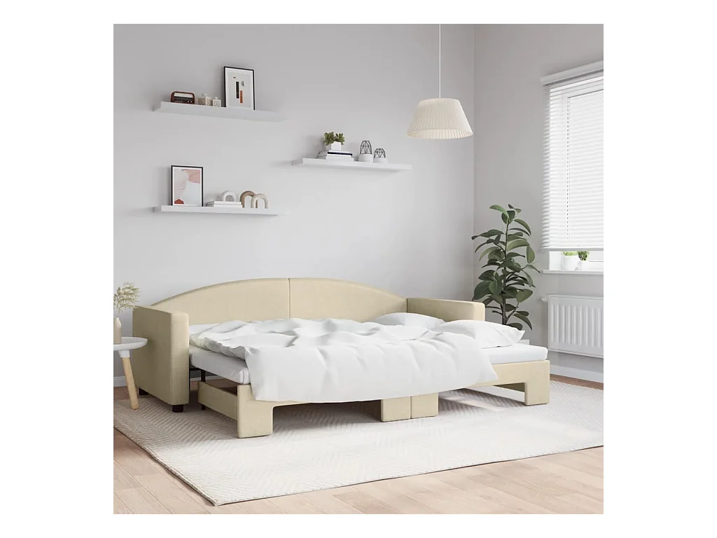 Sofá cama nido con cajones tela color crema 80x200 cm