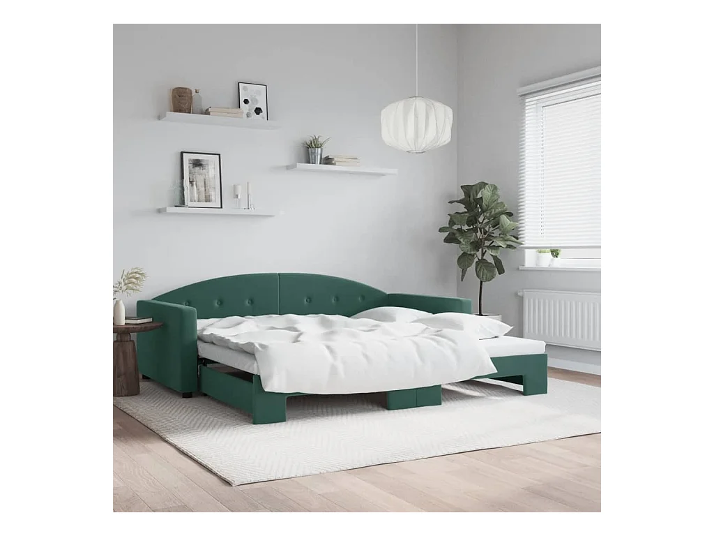 Sofá cama nido con colchón terciopelo verde oscuro 100x200 cm