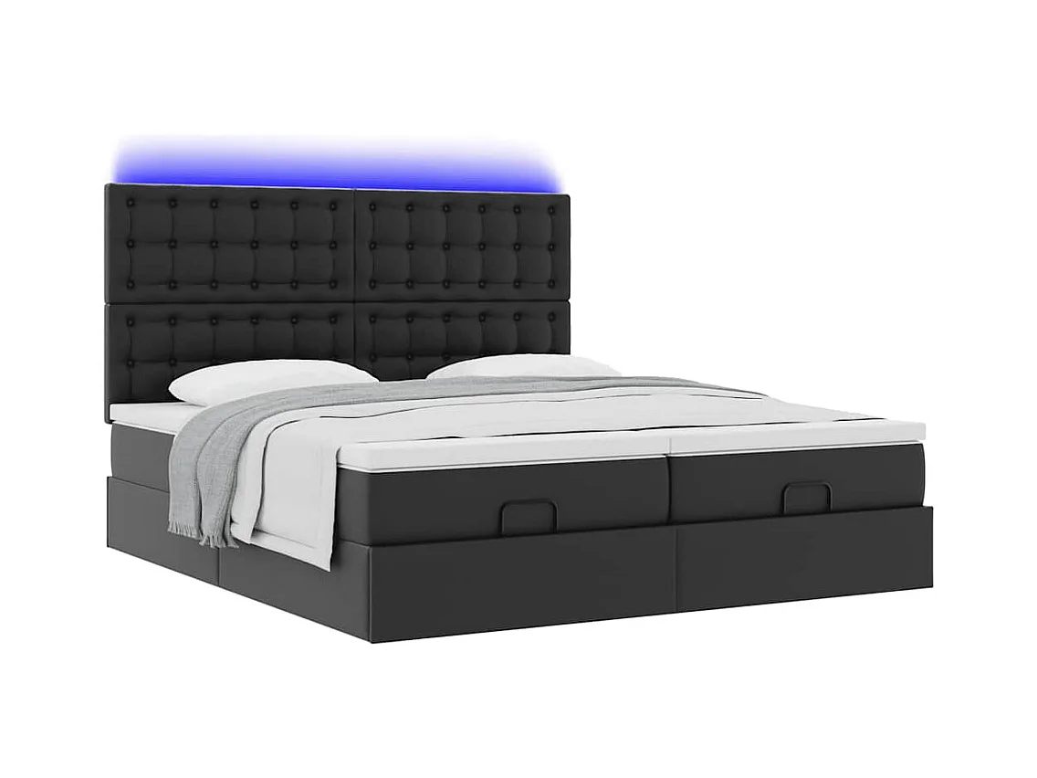 Cama otomana colchón y LED cuero sintético negro 160x200 cm