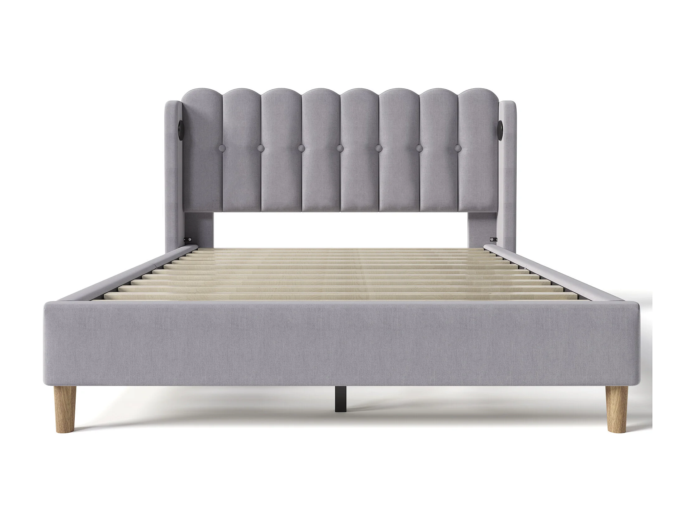 Cama para adulto de 140 x 200 cm - con cabecero, puerto USB y puerto Tipo C y somier - lino - gris - colchón incluido
