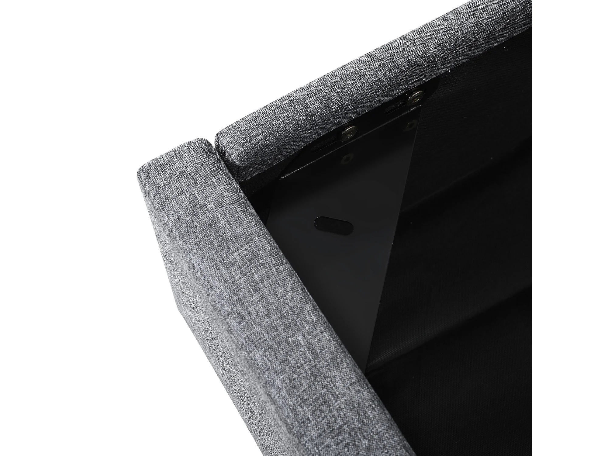 Cama baúl doble 160x200 cm - LED y USB-C - en lino gris (sin colchón ni mesita de noche)