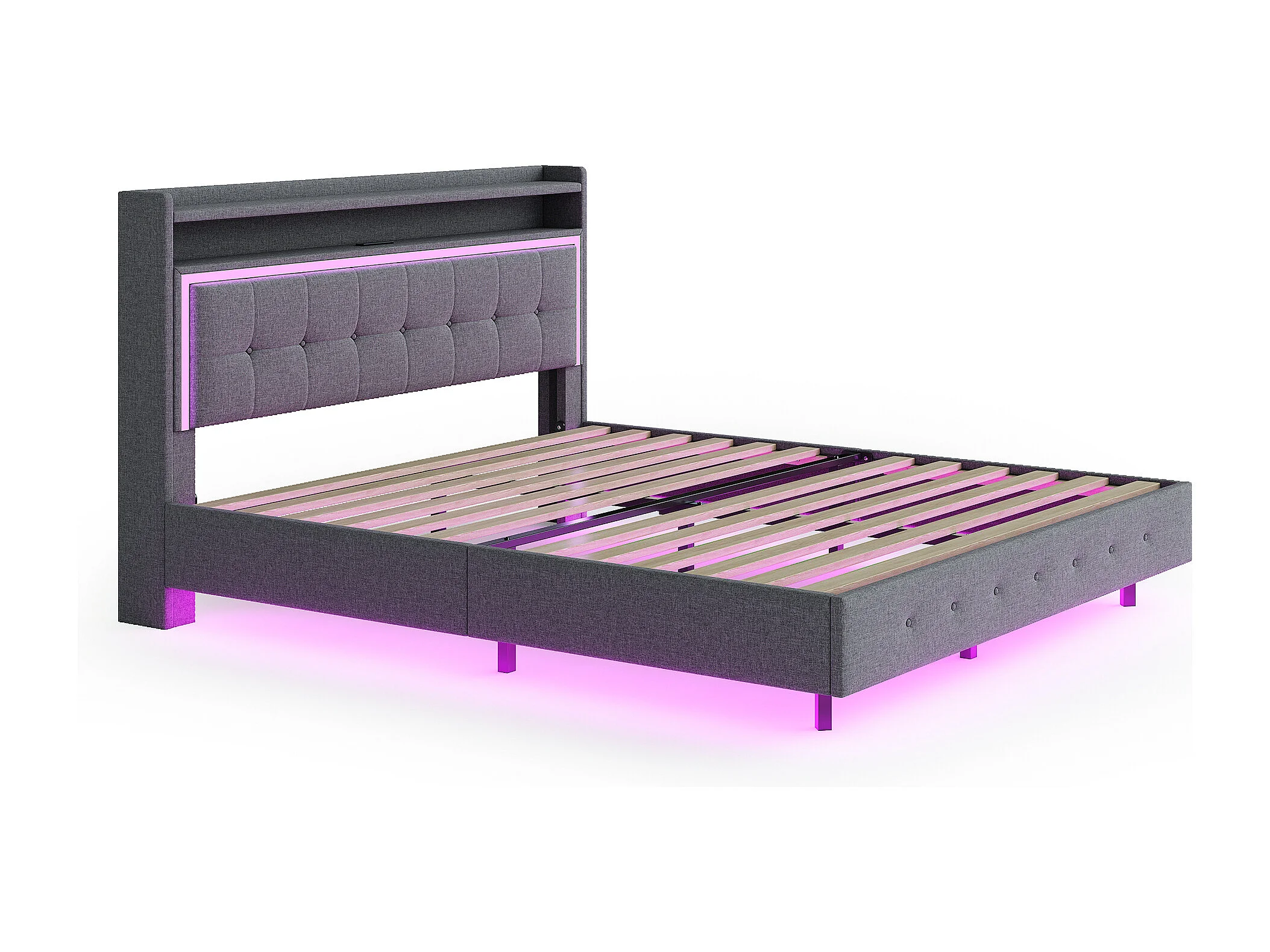 Cama para adultos 140x200cm con USB y LED - Tejido de lino - Gris