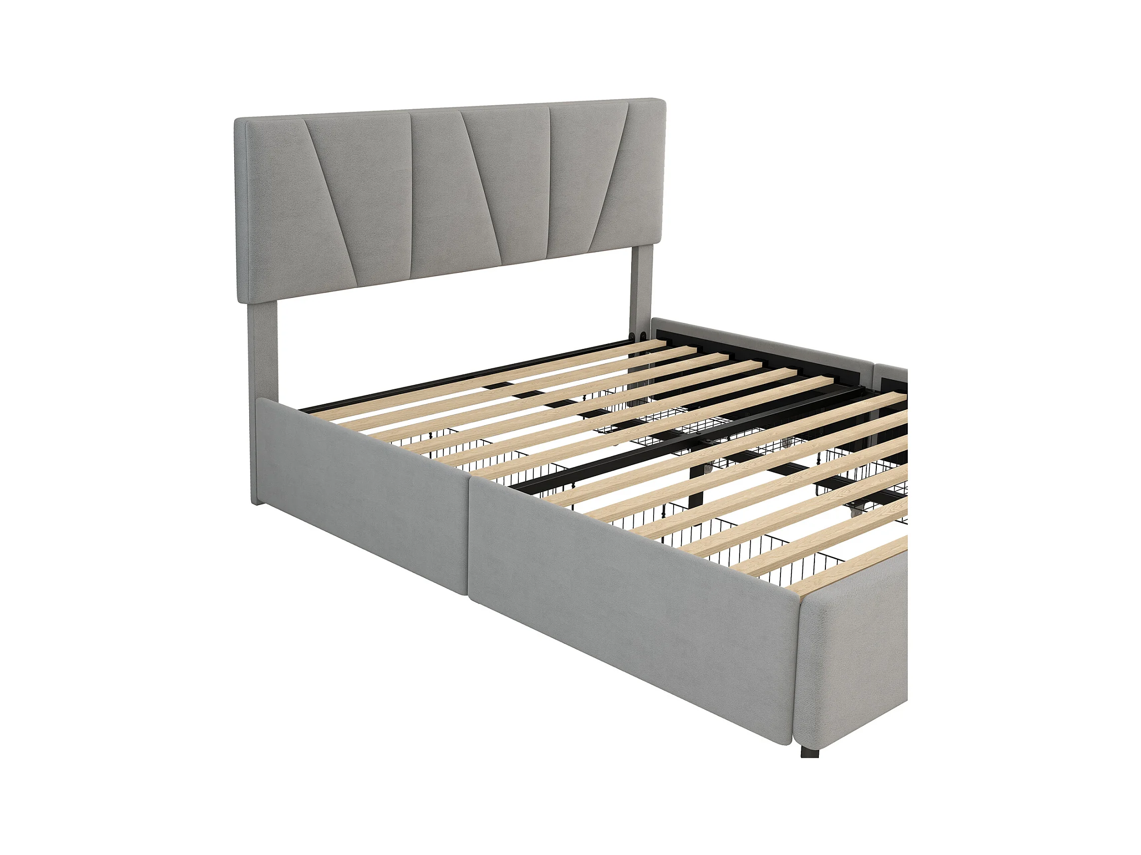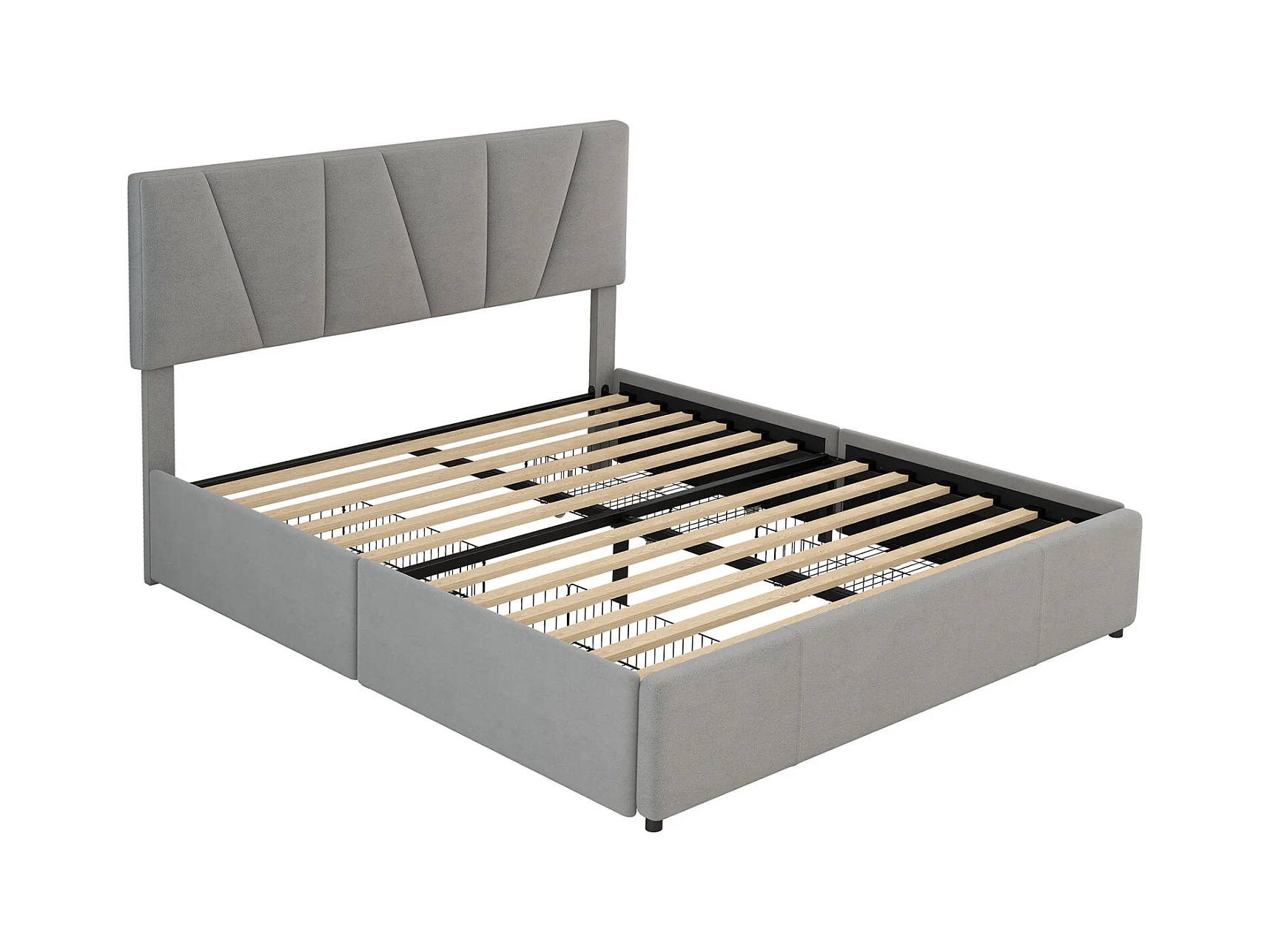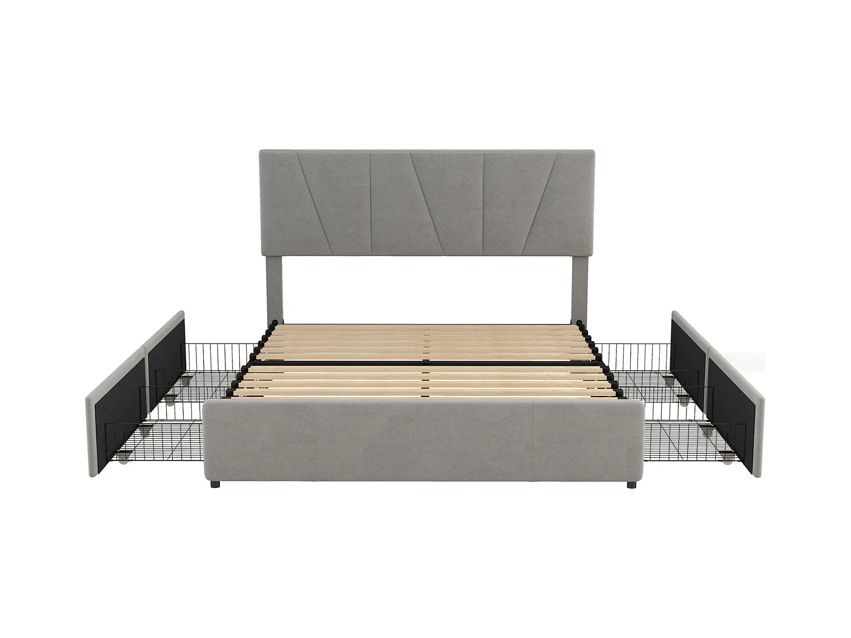 Cama para adultos 160x200cm en tejido de terciopelo - con 4 cajones - cabecero regulable y somier de láminas - Gris