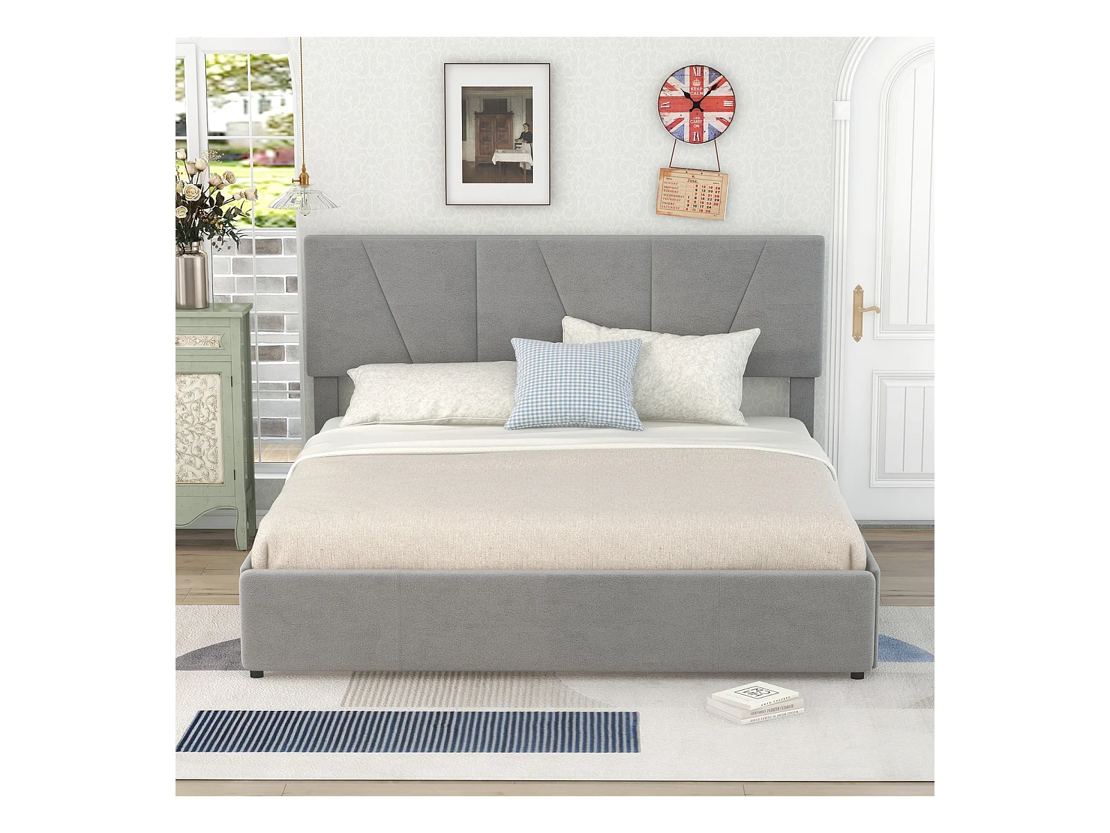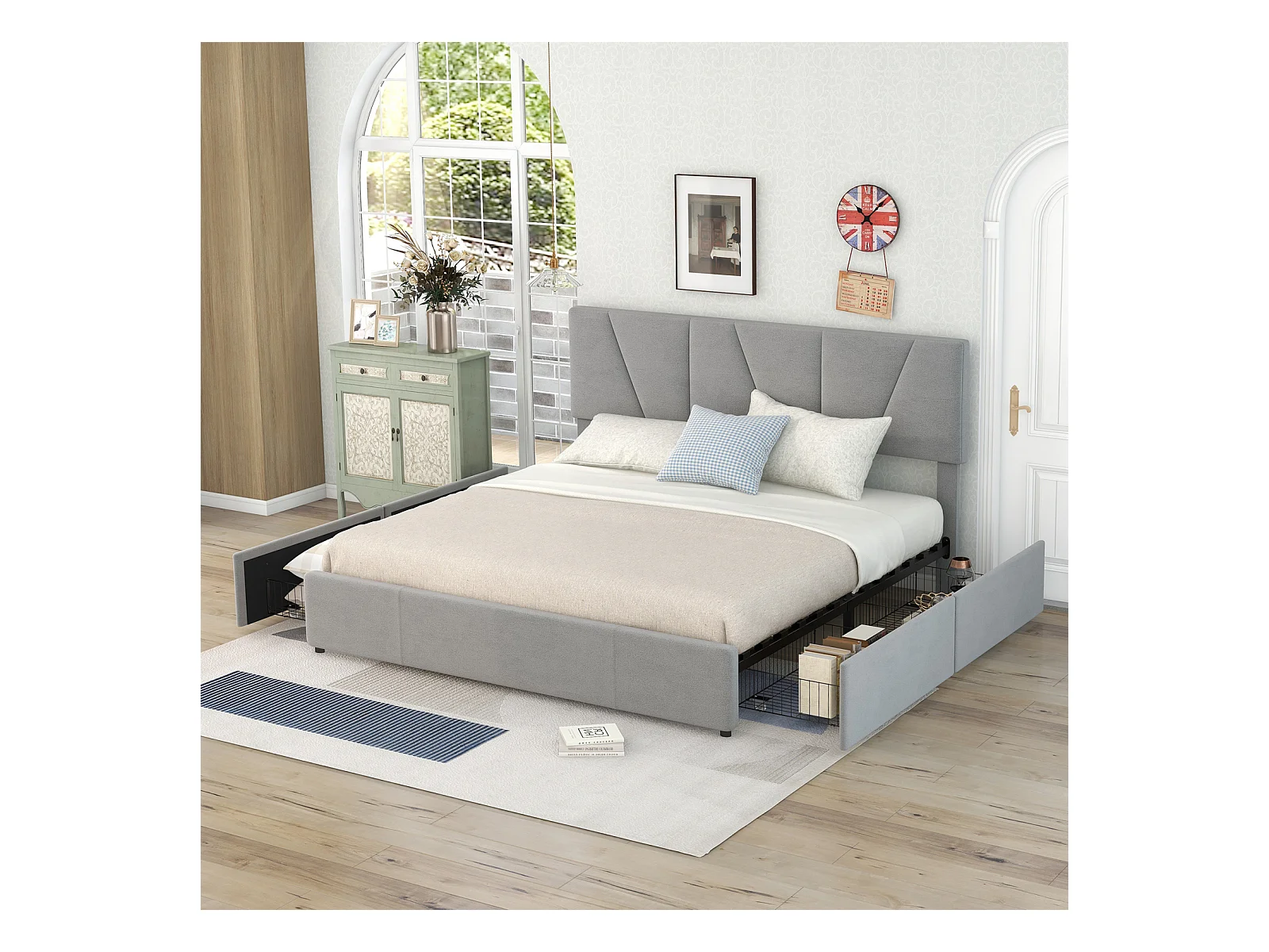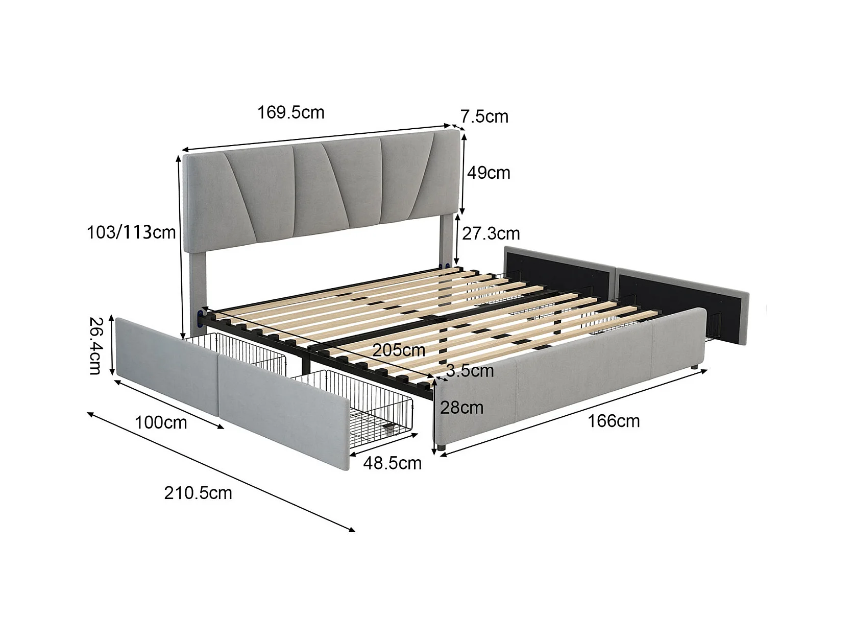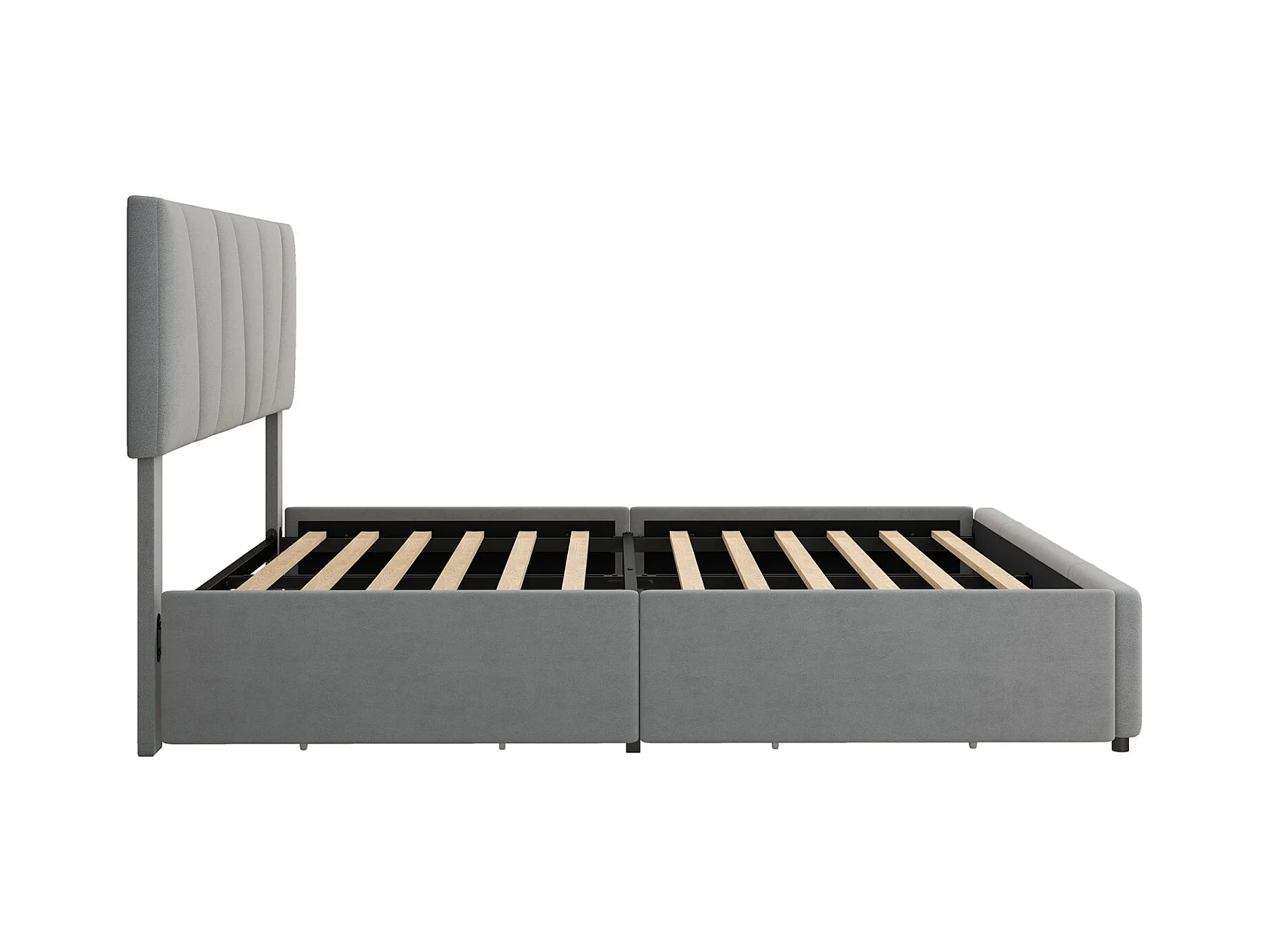 Cama para adultos 160x200cm en tejido de terciopelo - con 4 cajones - cabecero regulable y somier de láminas - Gris