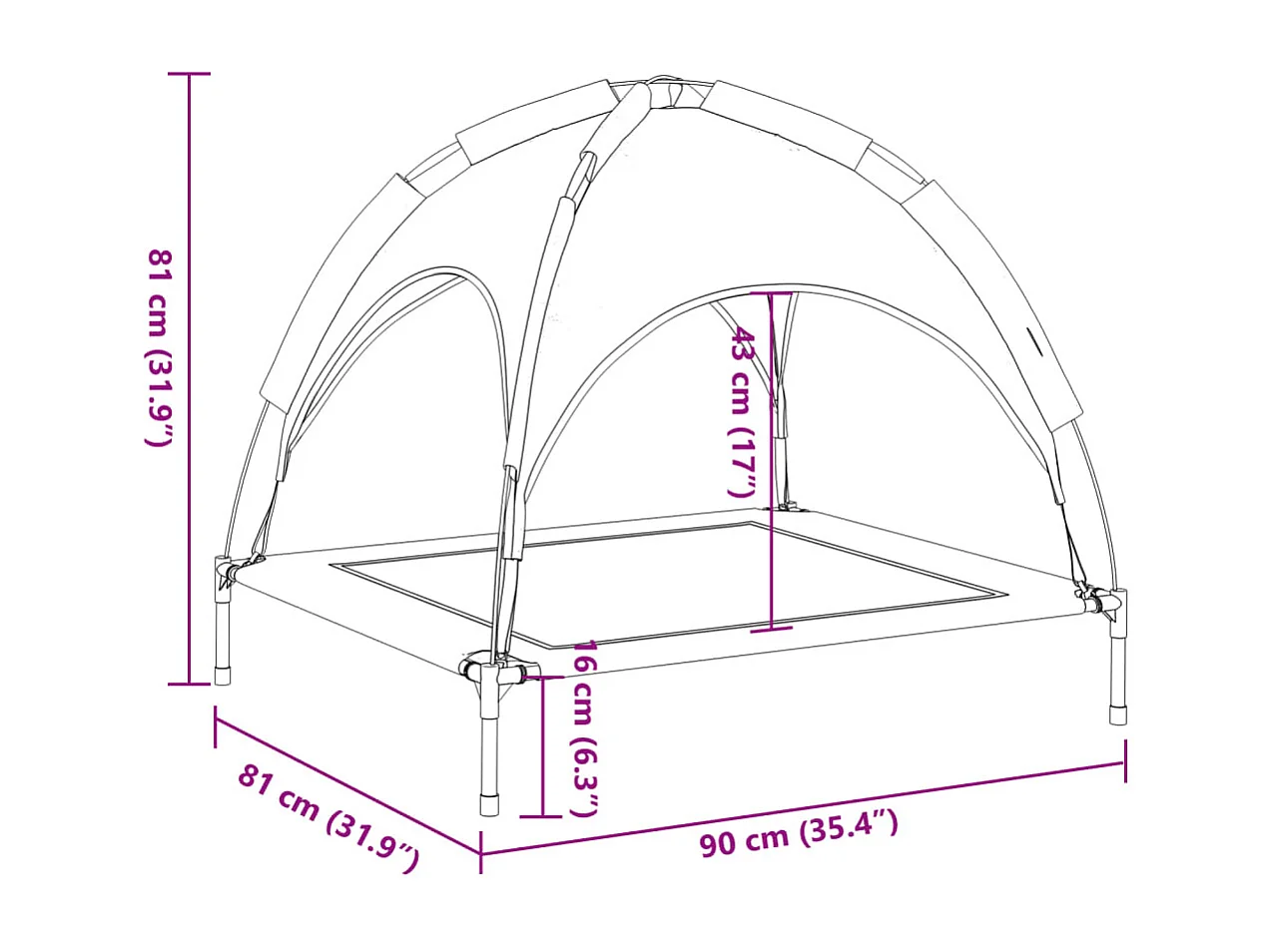 Cama para perros con dosel antracita, tela Oxford y acero