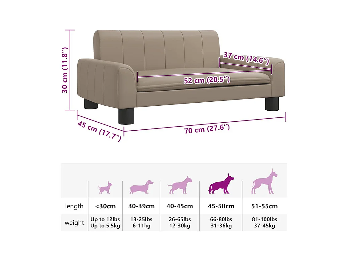 Cama para perros de cuero sintético color capuchino 70x45x30 cm