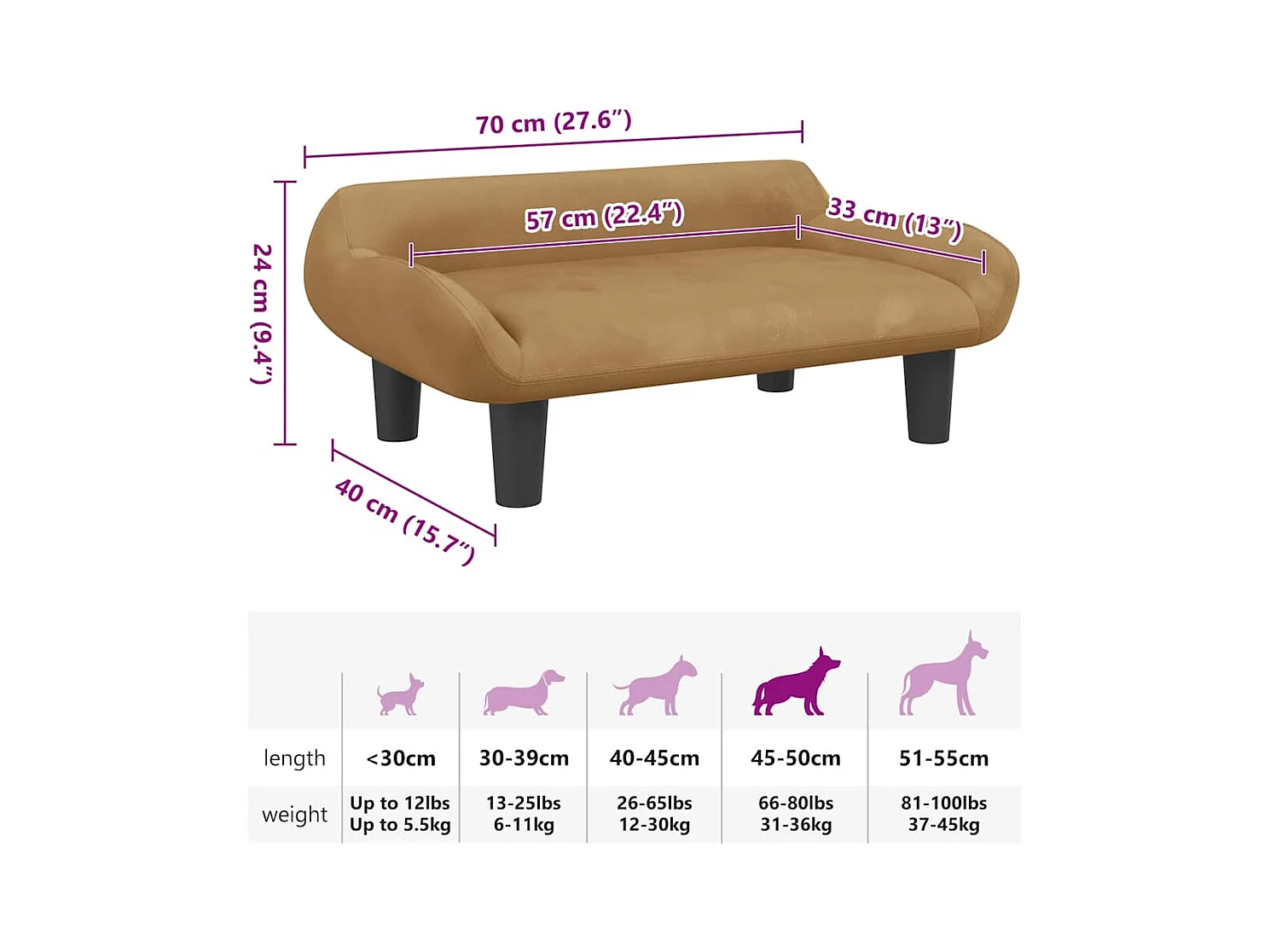 Cama para perros de terciopelo marrón 70x40x24 cm