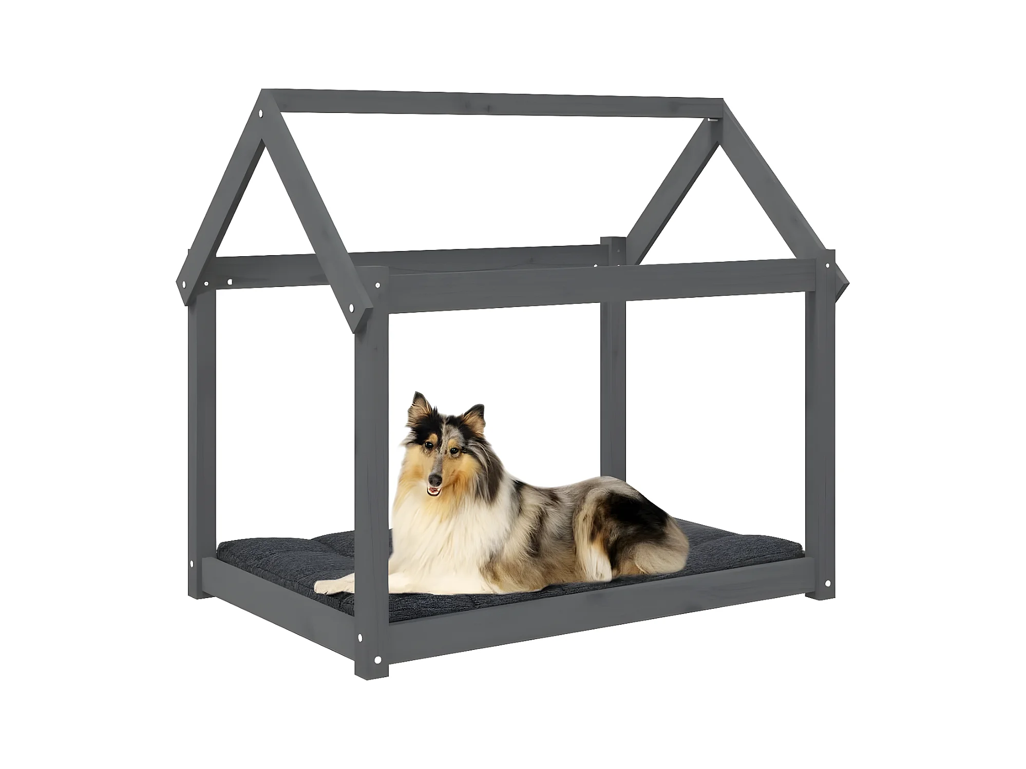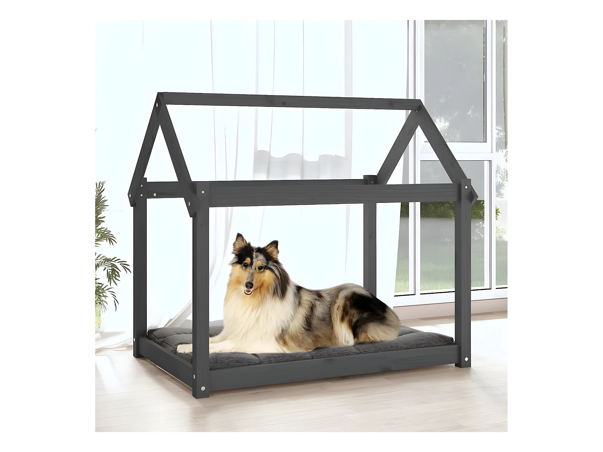 Cama para perros madera maciza de pino gris 95,5x73,5x90 cm ES838998