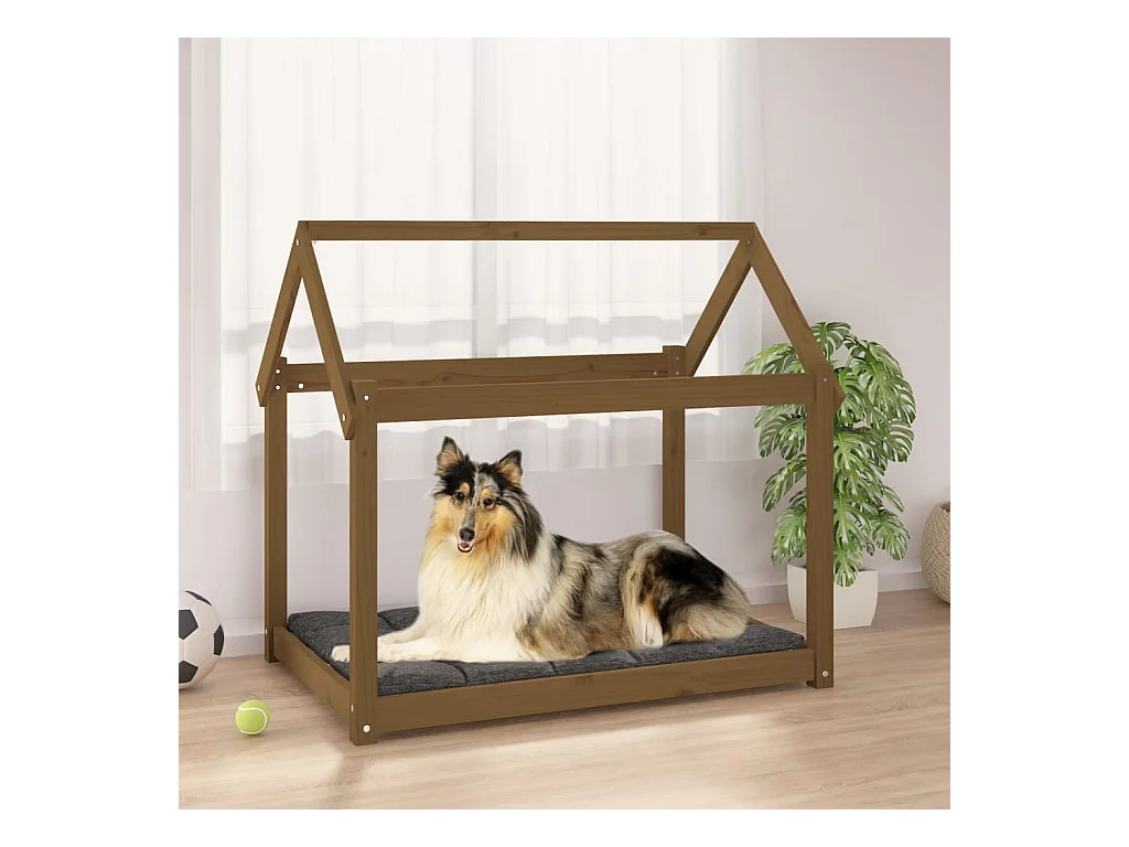 Cama para perros madera maciza pino marrón miel 101x70x90 cm