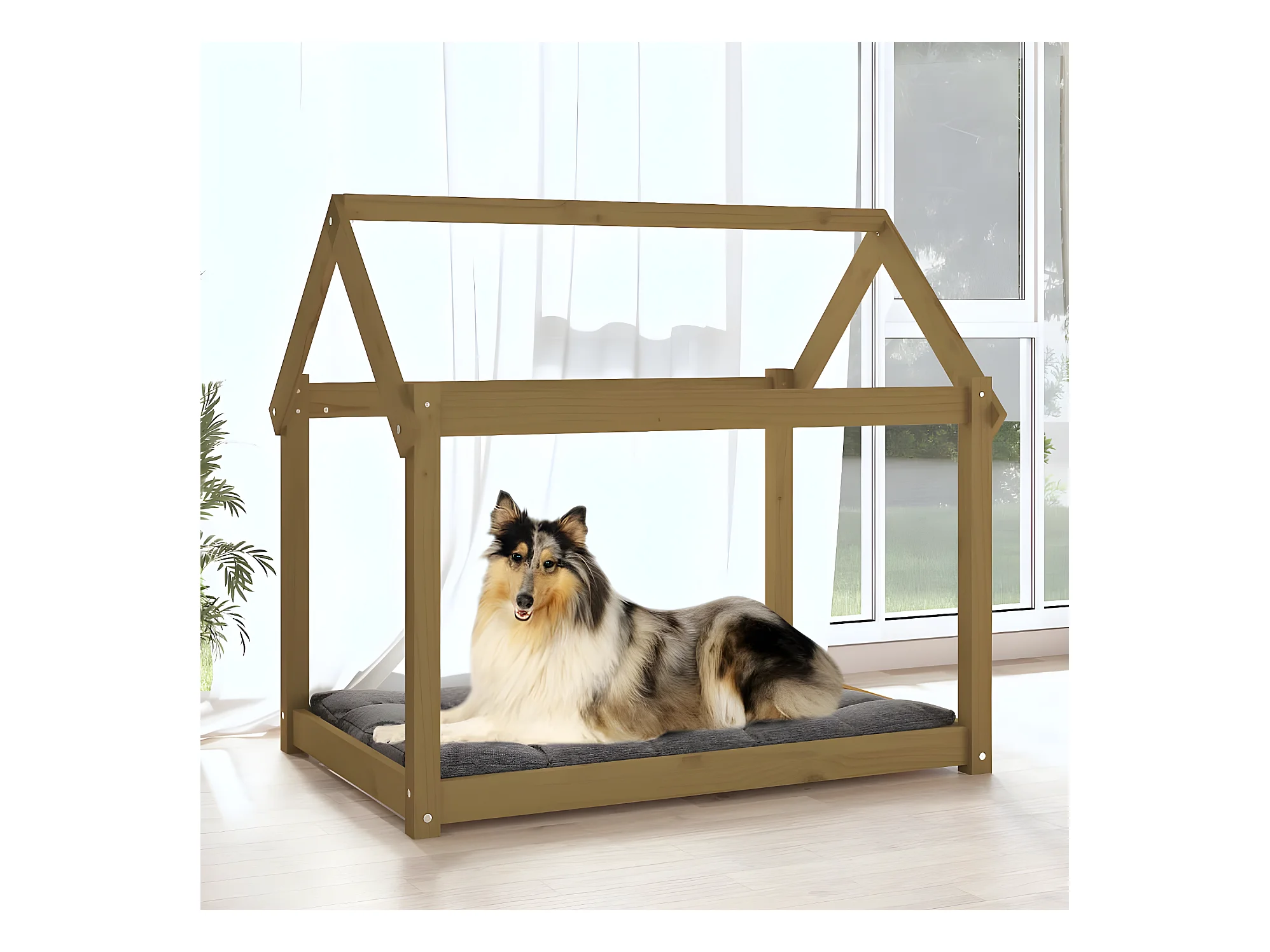 Cama perros madera maciza pino marrón miel 105,5x83,5x100 cm ES991947