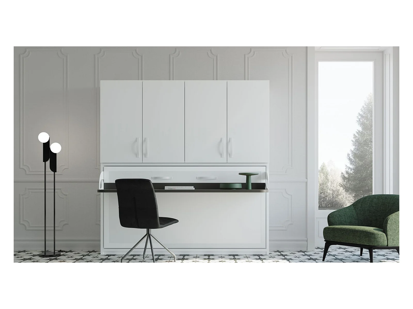 Cama abatible con escritorio 140x190 blanco satinado P 35 Kinoa
