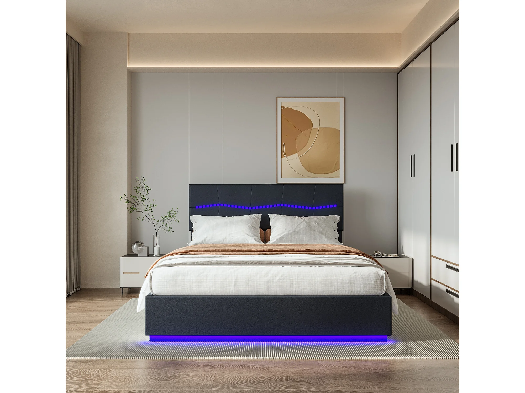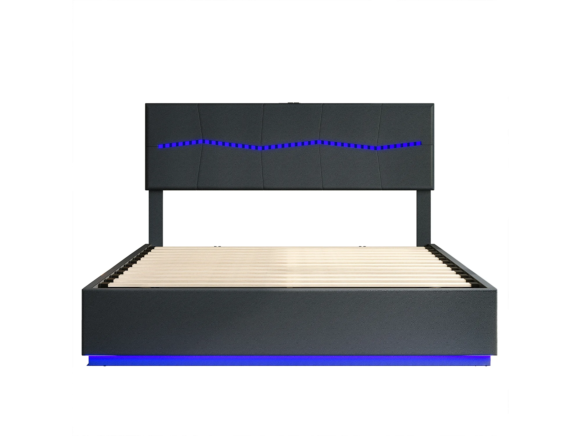 Cama inflable doble europea con almacenamiento de 180 x 200 cm, diseño a cuadros, con LED de colores, color negro y poliuretano.