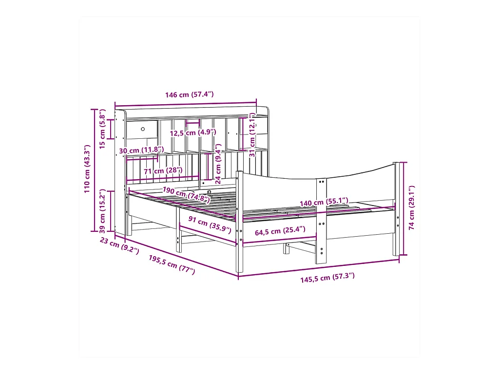 Estructura de cama sin colchón madera maciza de pino 140x190 cm