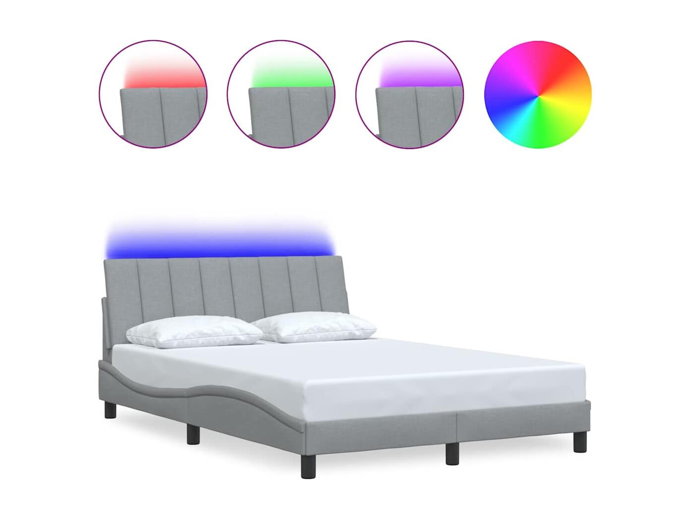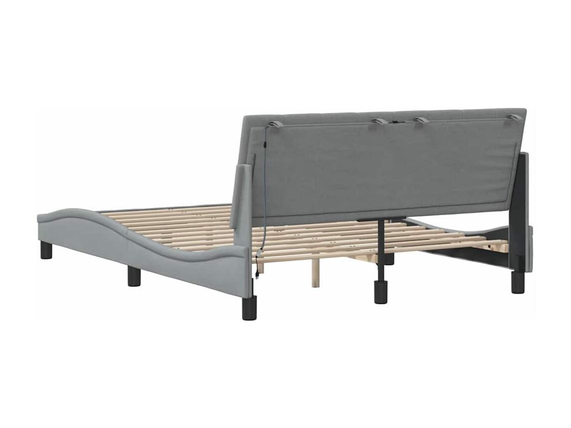 Clicnbuy le ofrece : ¡Disfrute de una noche de sueño reparador con este marco de cama con cojín en la cabecera! Es un complemento acogedor para cualquier dormitorio. Material de primera calidad: La tela posee un aspecto sencillo y limpio, y es transpirable y duradera.Patas de apoyo: La cama se apoya en patas robustas, que garantizan su estabilidad, seguridad y firmeza.Listones robustos: Los listones de madera contrachapada proporcionan una buena distribución del peso, lo que garantiza que el colchón se mantenga en tu sitio con cada giro y vuelta del cuerpo mientras duermes.Excelente soporte: El cabecero acolchado está relleno de fibra PP para una comodidad ultrasuave y óptima, lo que te brinda un excelente soporte para la espalda mientras estás sentado en la cama para leer o ver la televisión.Luces LED para un ambiente agradable: Esta cama cuenta con luces LED que se pueden ajustar fácilmente para crear un espectáculo de luces personalizado. Puedes personalizar los modos, los colores y el brillo para mejorar el ambiente de tu espacio interior. Información útil:El colchón no está incluido con la cama. Ofrecemos una variada selección de colchones. Puedes echar un vistazo a nuestra tienda para buscar el colchón correspondiente.El producto tiene un conector USB que necesita una fuente de alimentación USB certificada de 5 V (no incluida).Únicamente puedes cortar por la parte con el símbolo de las tijeras y únicamente la parte con el USB seguirá funcionando como antes.