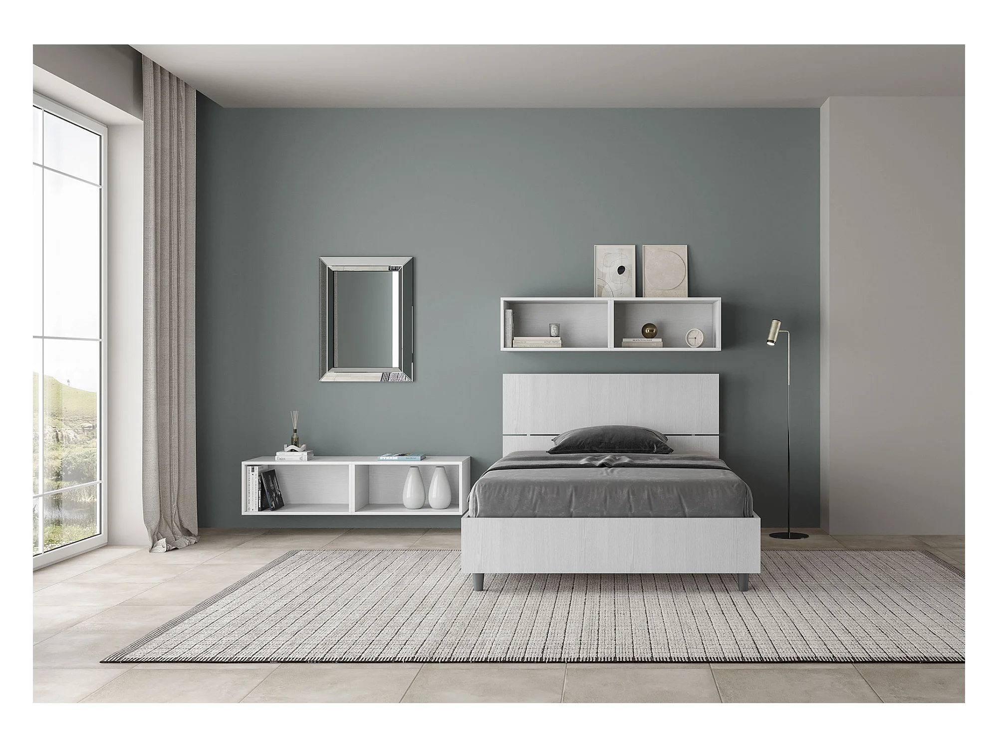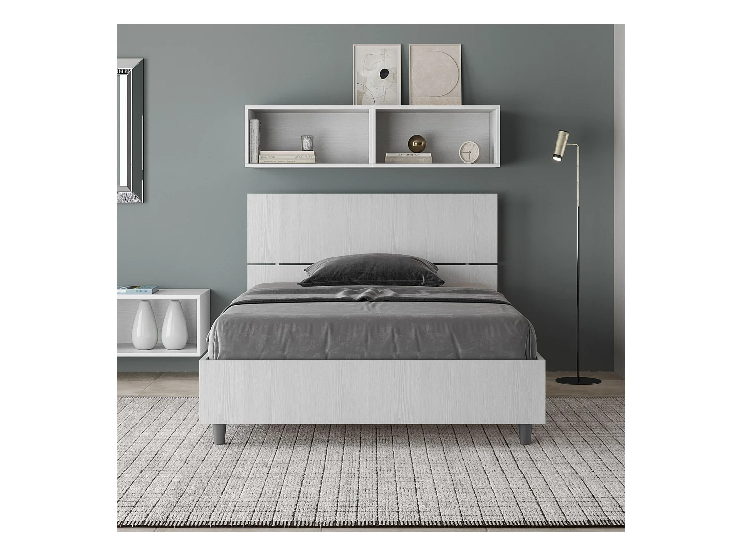 Cama queen size sin somier 120x190 cabecero recto fresno blanco Demas