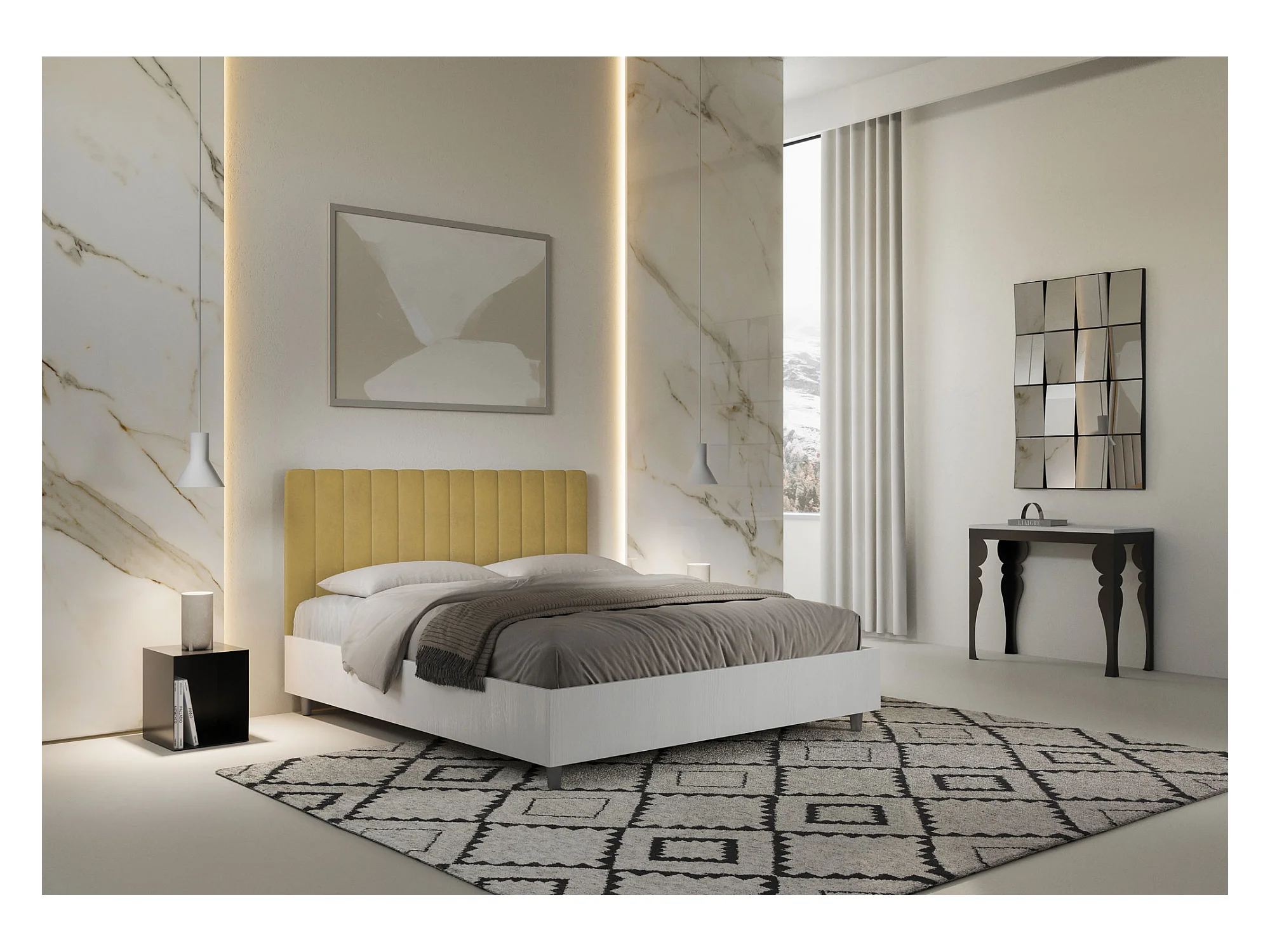 Cama sin somier 160x190 Cabecero estructura fresno blanco Melamina/microfibra ocre Kaia