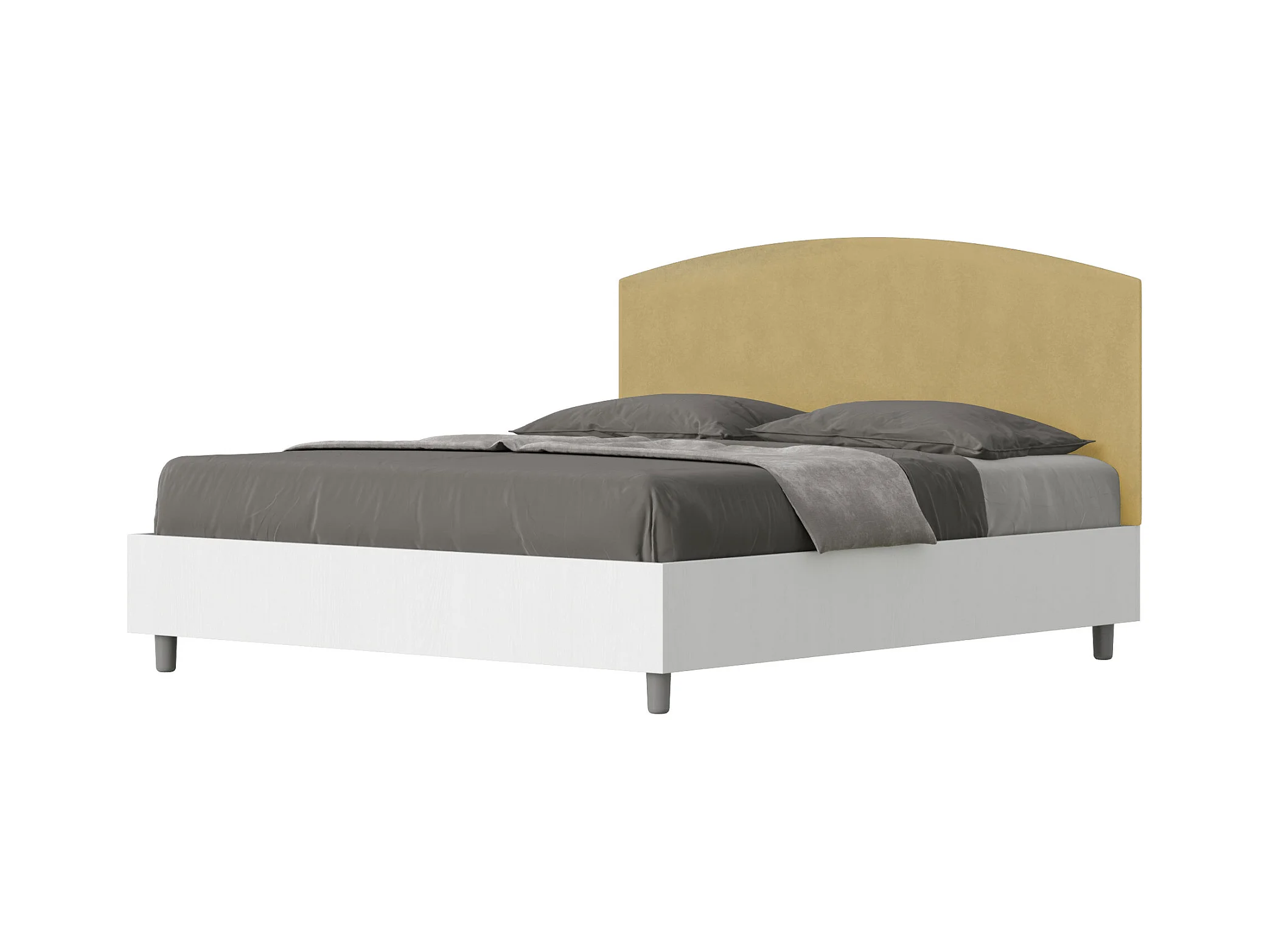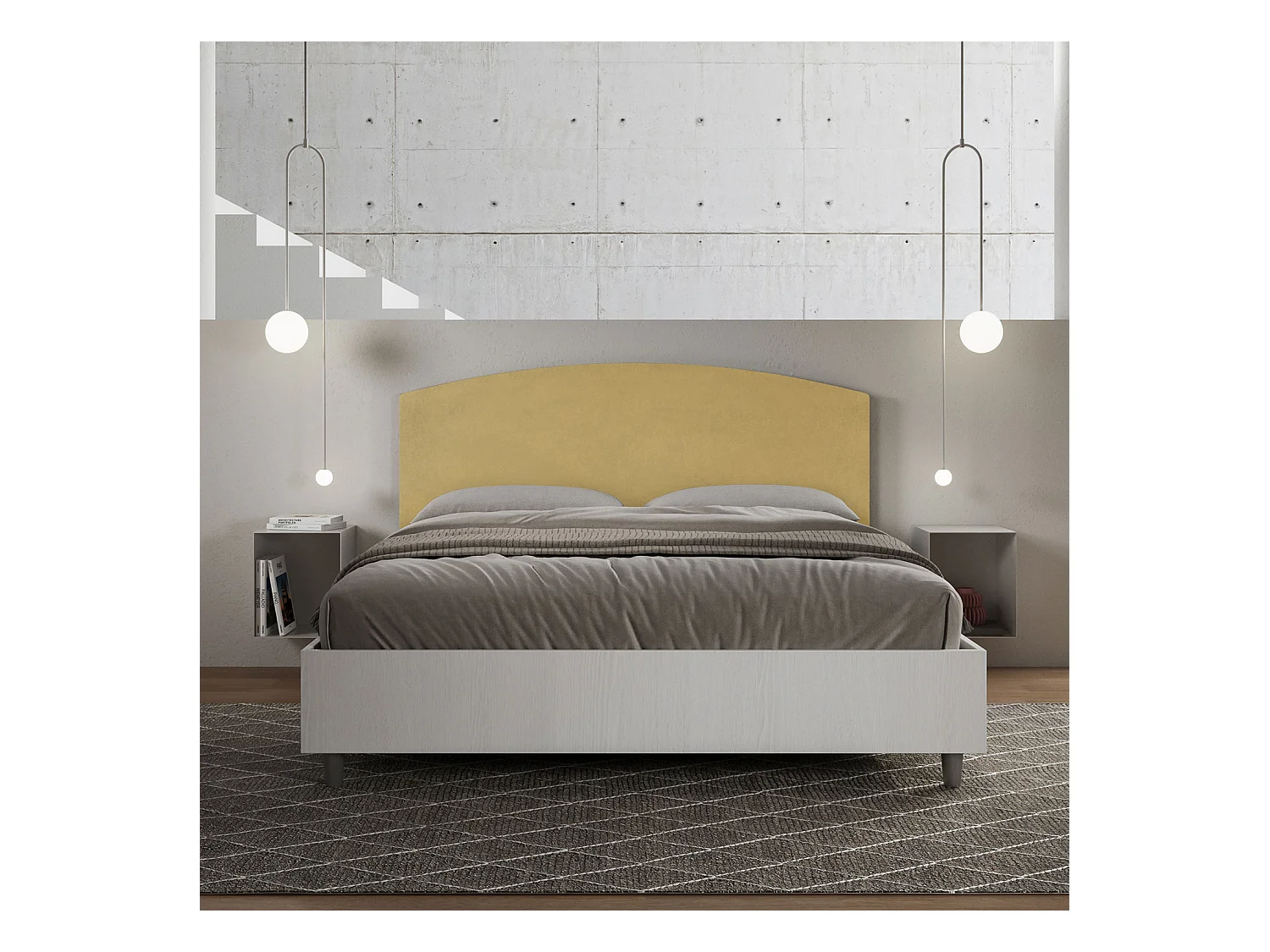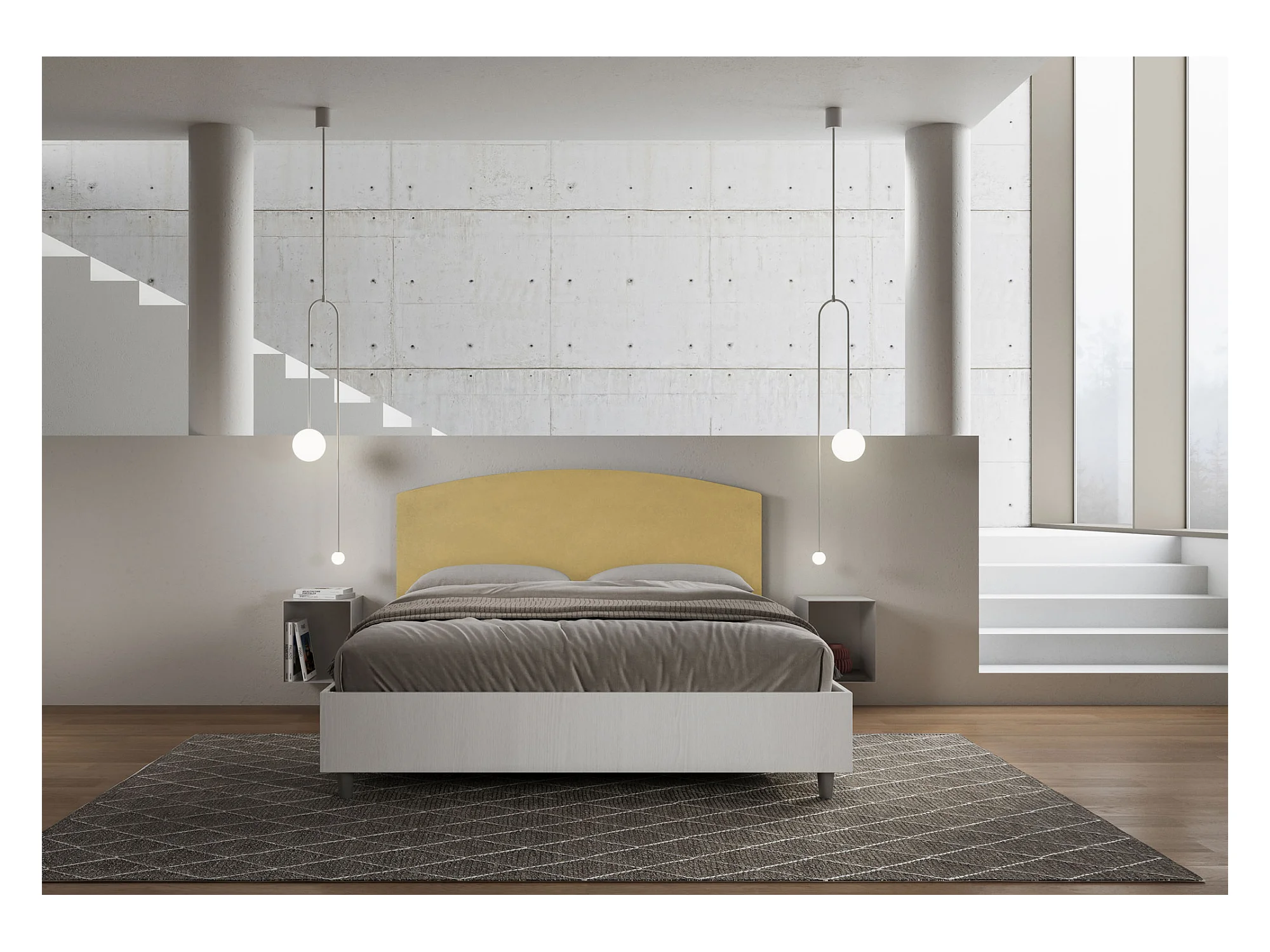 Cama sin somier 160x200 estructura de fresno blanco con cabecero de melamina/microfibra Antilia ocre