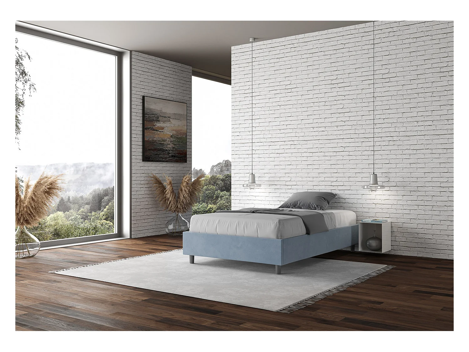 Cama sommier sin somier acolchado 120x190 microfibra Azelia azul