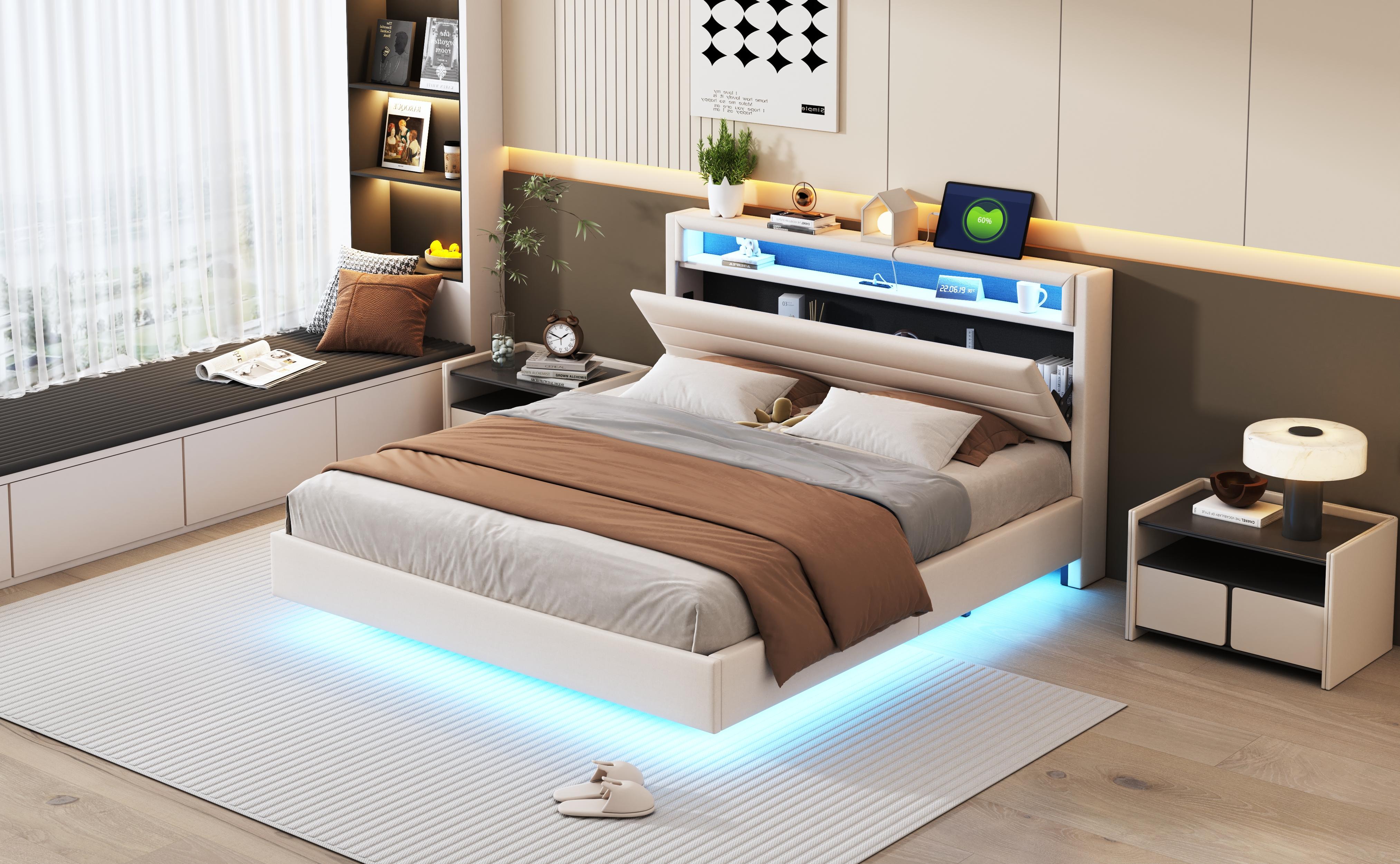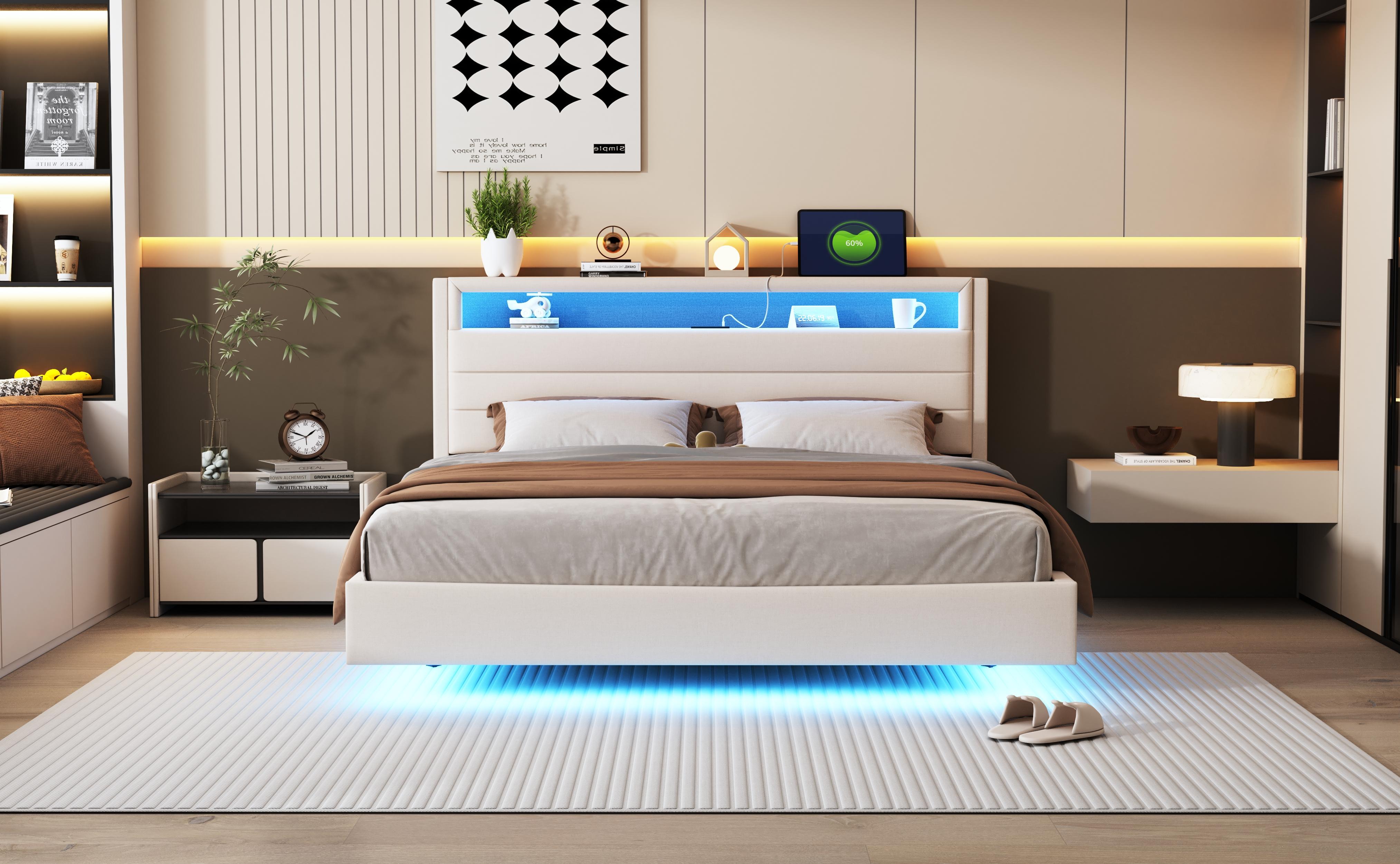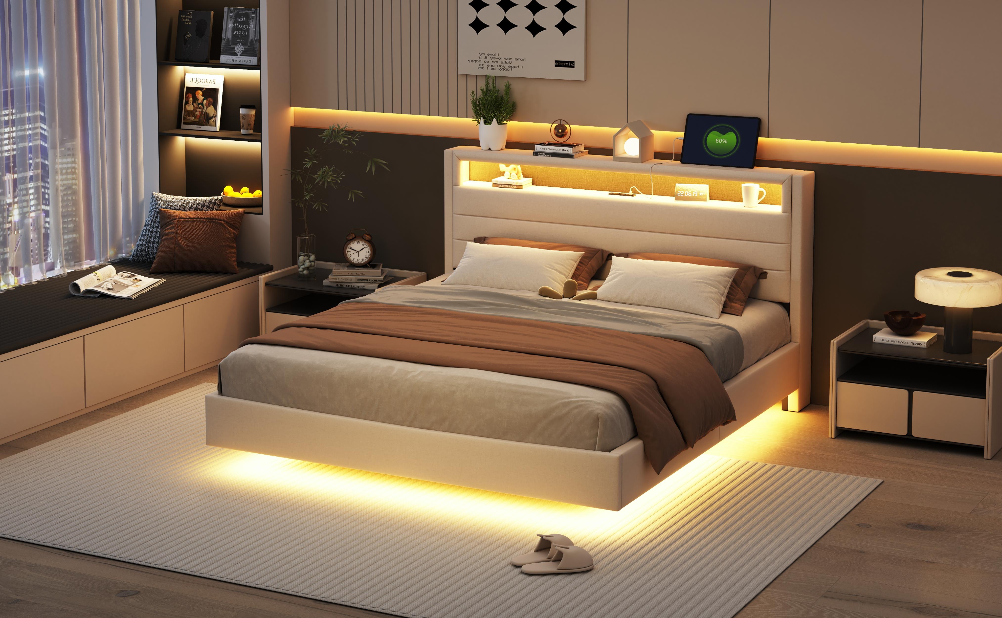 • Diseño versátil y moderno: Esta cama tapizada combina comodidad y funcionalidad con su tela de lino beige e iluminación LED integrada. El cabecero reversible te permite maximizar el espacio y adaptarse a tus necesidades.